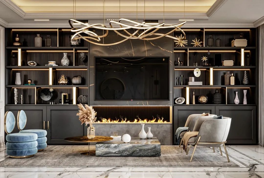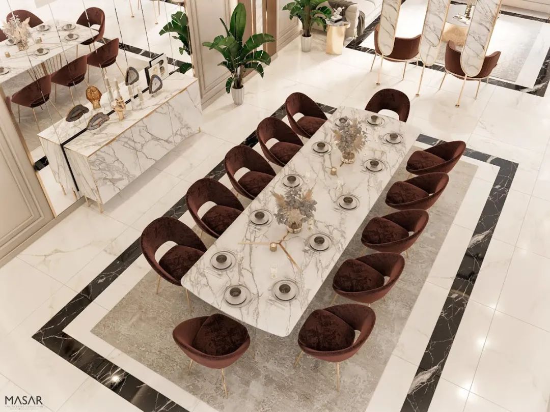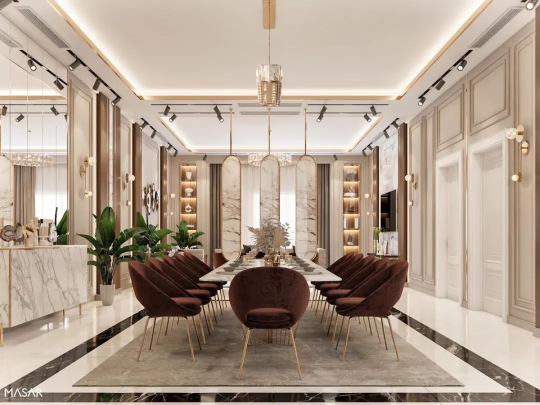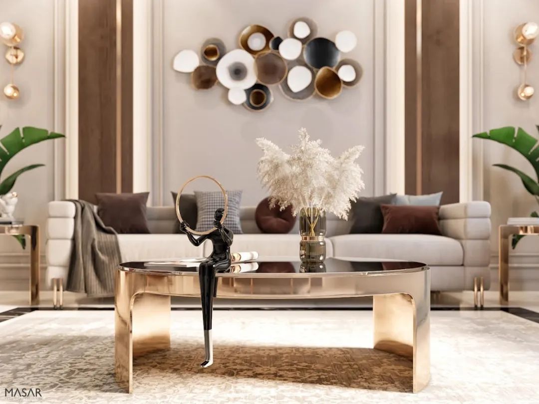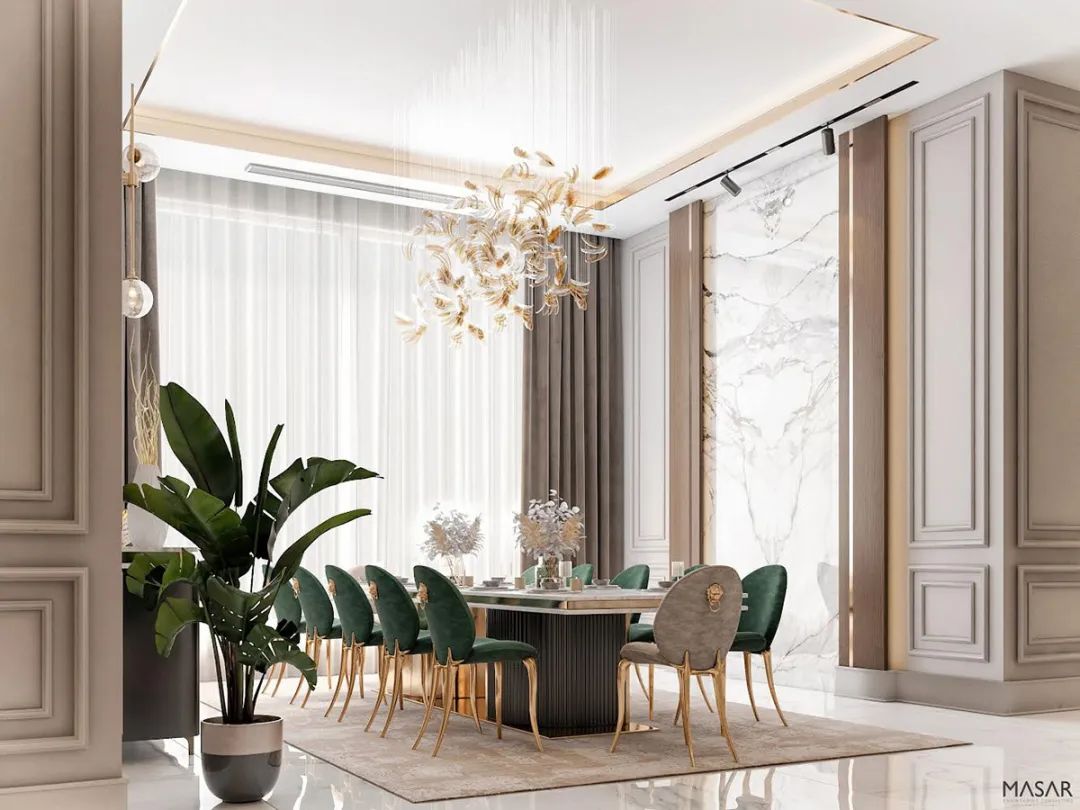 有效地衬托出奢华的金色和白色大理石装饰方案