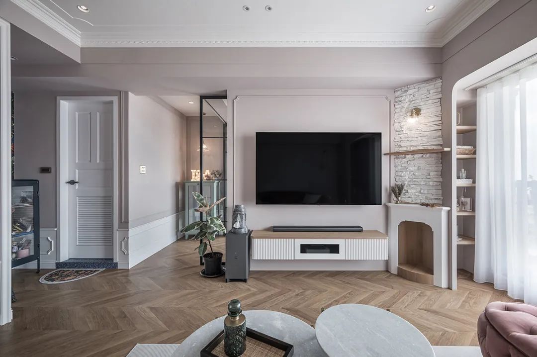 铺陈出粗朴况味并顺势以斜角切面佐入壁炉造型