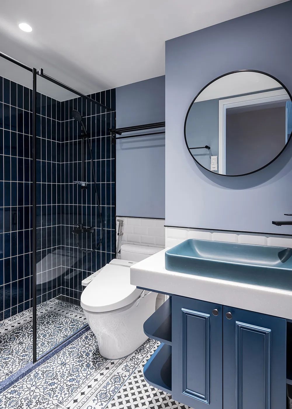 另间客浴的用色则以男主人喜爱的蓝调为主轴