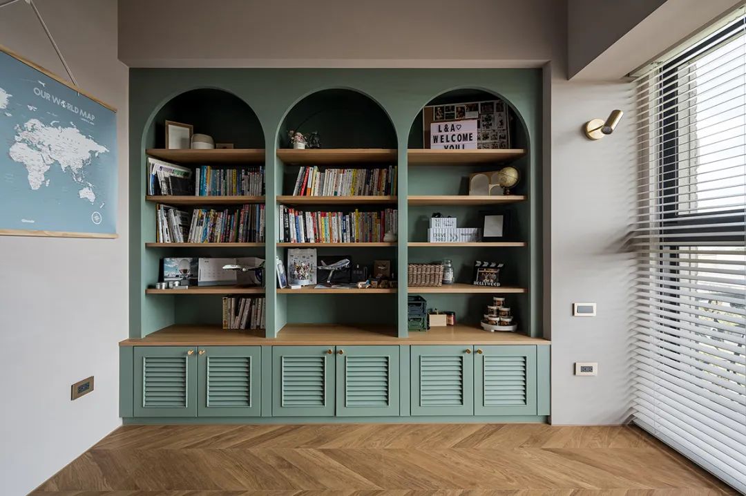 顺梁而下之处漆上橄榄绿,散发放松疗愈气息