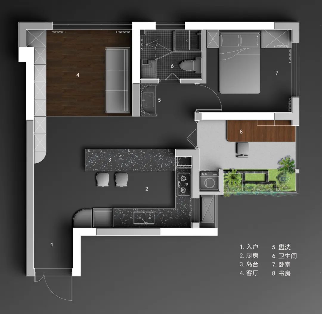 56㎡一居室,高级黑才有这么酷酷的高级感