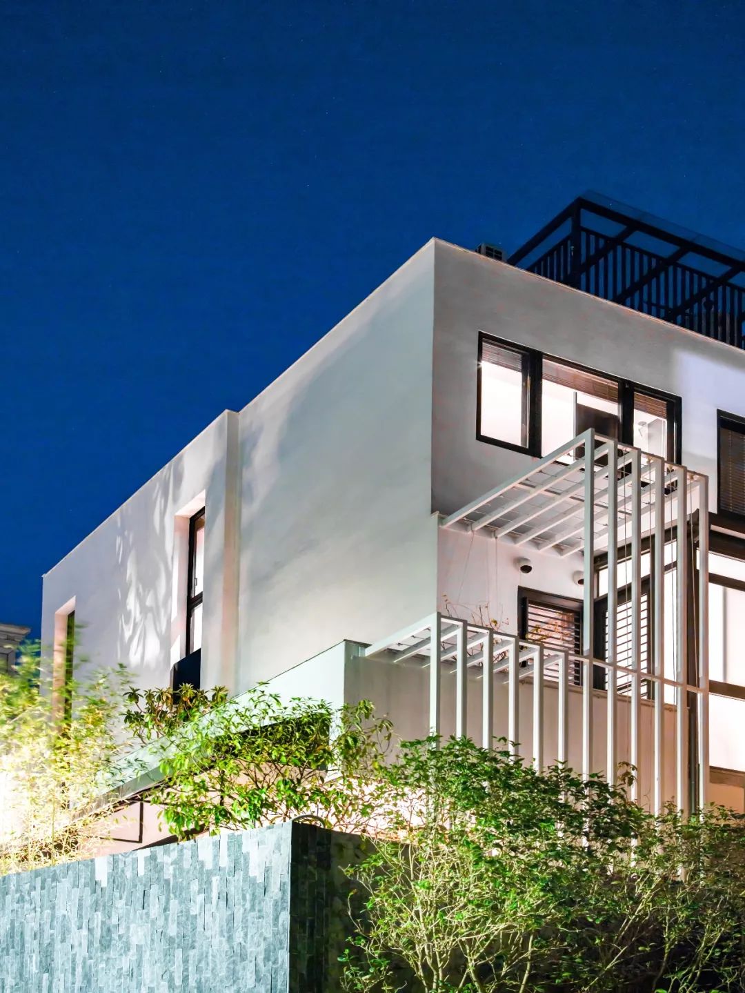 房子的外观我们重新设计,以白色和木造结构为主,最显眼的是有一大棵凤凰树种在院子。