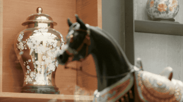 沿着旋转梯上二楼,墙面上都是屋主的收藏,他们夫妻喜欢到国外旅游,会在当地买纪念品、收藏品,主要收集的都是“马”,因为男女主人刚好都属马,所以在家里可以看到很多。
