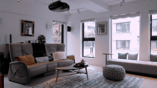 而男主人他的爱好是音乐,收藏黑胶有40年了吧,最多的时候家里有4万张黑胶,所以我们也为他设计了专属的音乐空间。