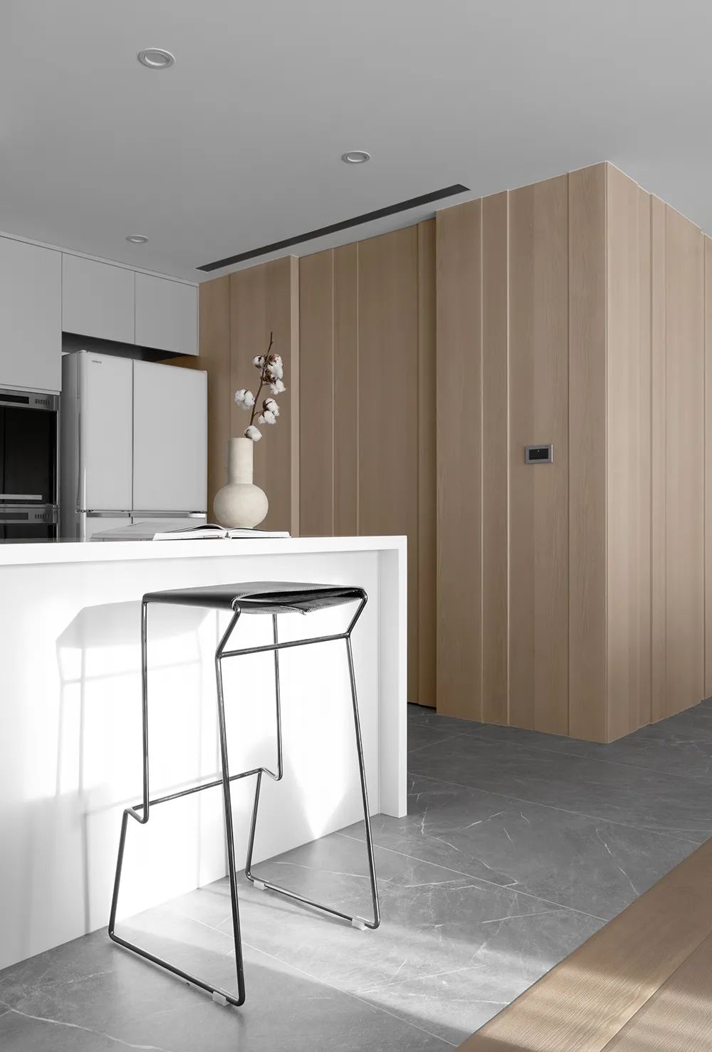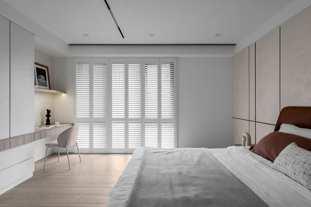 还有一整面木作百页窗筛落轻柔光影