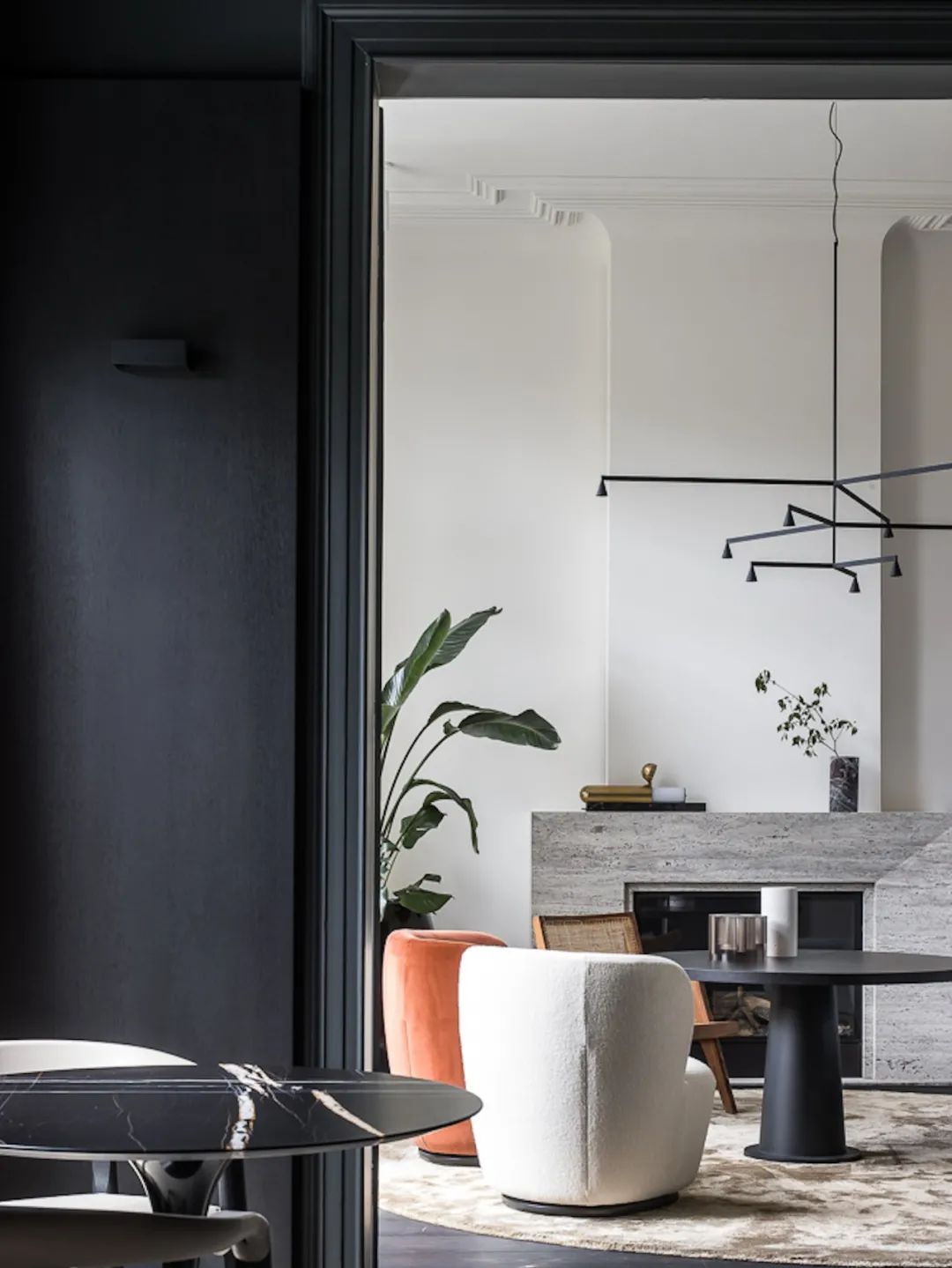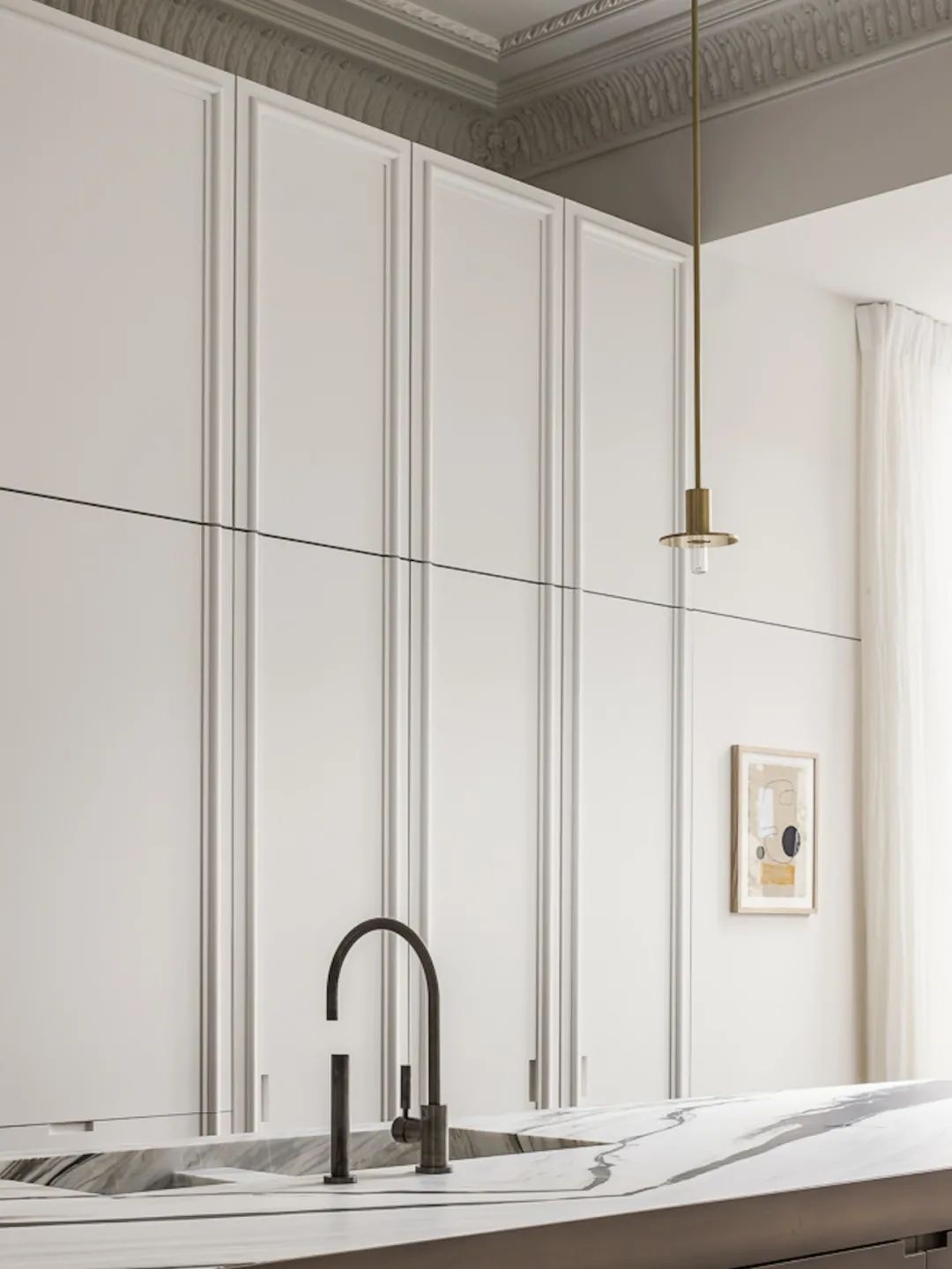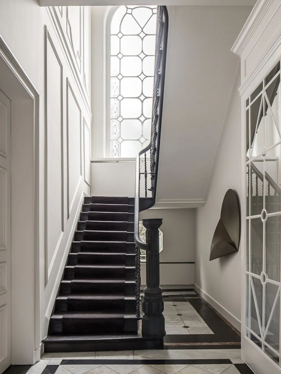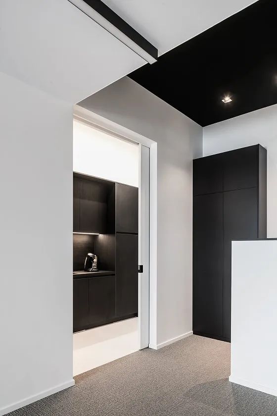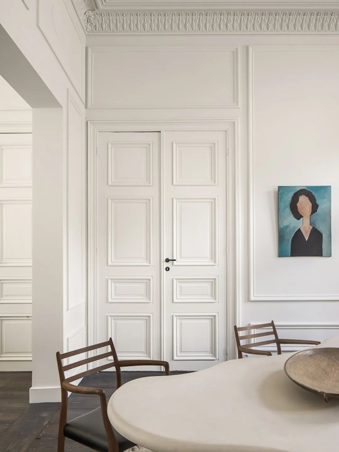 “家庭需要安静,而这所房子的宁静与精致会让所有人都最让我们印象深刻的。”一位颇具审美的室内设计师是怎样理解自己的家呢?比利时设计师Evelyn Moreels回答了这个问题。她将其视作一间“避难所”。在比利时西北部港口城市根特(Ghent)的市中心,一座新古典主义的联排别墅将现代设计与时代细节完美融合,凝聚出一束对抗城市喧嚣的光芒。他的花园被高墙包围,窗户安装了厚厚的玻璃,隔绝外部声音,这就像生活在一个茧里。Evelyn Moreels和建筑师Pascal Bilquin一直保持着默契的合作。所有的设计和布局由Evelyn Moreels完成,而室内的对称性和光线问题则交给了Pascal这位天赋建筑师。这座别墅经过改造后,延续了原有的庄重和平静,变化的日光给人一种空灵的感觉。晚上,灯光落在前立面上,随着夜幕降临,气氛变得更加神秘。平和与宁静是这所住宅的精神,也是室内调色板的来源。高高的天花板、原始的地板和楼梯,Evelyn不知何故想起了巴黎,但她希望添加现代的元素进入。Evelyn觉得白色是大多数房间里最适配的颜色,因为它像一张白纸,可以让设计师画出心中的造型。当然空间也有黑色元素,但仅限于书房和一些家具和灯具。 如火焰环绕的布局,锐利而具有感染力。在时代细节中为当代家具赋予了现代主义背景。橱柜上的珠饰延续了餐厅的镶板,营造出空间与空间之间的凝聚力。白色的墙壁则将原始造型拉到焦点上,并使艺术品发挥最大优势。餐桌的非传统形状适用于整个家庭,但它也为Evelyn夫妇提供了更亲密和舒适的环境。在炉灶旁喝酒。在餐桌上欣赏公园上空的日落景色,那是一种轻松舒适的体验。卧室的现代性首先通过浅中性色调表达出来,白桦木橱柜、海草配饰相得益彰,营造出如酒店客房般的豪华和平静氛围。 花园感觉就像是市中心的一片绿洲。在设计花园景观方面,Evelyn Moreels特地邀请了Aldrik Heirman来进行设计。策略性地种植已成熟的灌木,以软化建筑的轮廓并创造更多空间的错觉。“在阳光明媚的日子里,在庭院花园的有盖露台下,你真的可以想象自己已经被运送到了伊维萨岛(Ibiza)上。”这栋属于Evelyn Moreels的“避难所”在城市中成为一个珍贵的“茧地”,隔绝所有纷杂与喳闹。“简约并不是用少来表示少,而是用少来表示多。一个醇熟的极简风格的设计师应当通过最简单的设计,表现最舒适和效果最佳的空间。”Evelyn Moreels设计的Kantoren Aedimar是一个非常规的办公场所,雪白的色调、精致的装饰、舒适的软装,使其兼具了现代生活的舒适优雅和办公空间的功能需求。雪白的空间也有明暗的感觉,不过不是自然光影,更多的是用黑白色彩的拼接对比,黑色材料使用原生的木材,在白色石膏墙上有“纪律”地穿插,像钢琴键一样,构成现代时尚的基本格调。头脑风暴的中心在会议室,它被放置在一个充满光线的地方,所有的激情与灵感交汇于此。
