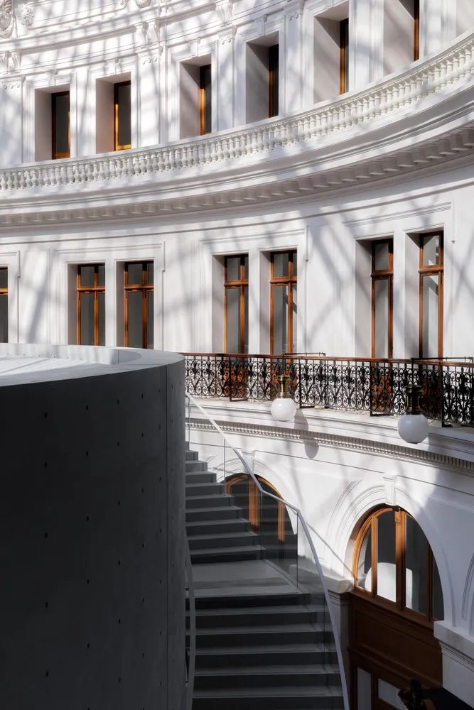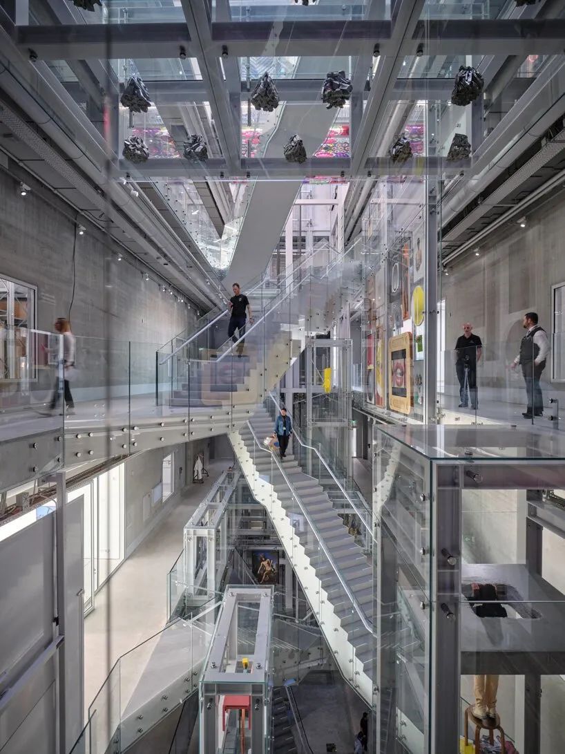今年仍然是艺术“出走”美术馆的一年,艺术作品走到街头、大自然中,或是走到线上、进入虚拟世界。 在这一年,新的美术馆、博物馆等文化场馆开幕,需要一些逆流而上的勇气,不过我们仍然能看到安藤忠雄、弗兰克·盖里、让·努维尔等普奖大师的作品满世界开花。 最近,知名设计网站 designboom 根据读者关注度选出了 2021 年度十大新开放的文化场馆,其中有 3 座都在中国。 这座从里到外都可圈可点的私人美术馆,多次延期开幕,从去年就吊足了全世界的胃口。 无论是拥有者弗朗索瓦·皮诺(François Pinault)的奢侈品巨头身份,还是进行改造的建筑师安藤忠雄的鼎鼎大名,都让巴黎证券交易所皮诺收藏馆(bourse de commerce)充满了吸引力。 巴黎证券交易所皮诺收藏馆的外观仍然保持着 18 世纪的模样,尤其是金属的玻璃穹顶。 ▸顶部壁画(局部) 走进馆内,有些变了,有些没变。顶部环形壁画的修复是此次改造的一大重心,可以看到纷繁的画作重新绽放生机。 而更加夺目的,在于安藤忠雄这次将他标志性的清水混凝土融入了这个 18 世纪的建筑中,极简主义与古典美学达成微妙的平衡。 由无限循环的“圆”延伸出的“圆形”“圆柱体”成为这次改造的主题,安藤忠雄在大厅中央置入了一个高达 9 米、直径 29 米的清水混凝土空心圆筒,它与穹顶呼应,在不改变建筑结构的基础上带来崭新的艺术空间,为这座新鲜的美术馆书写自己的名片。 ▸巴黎证券交易所皮诺收藏馆模型 从 2017 年开始,整个改造进行了 3 年,巴黎证券交易所皮诺收藏馆的改造项目可以说是安藤忠雄目前在法国最重要的作品,而他自己也乐于在其中探索古今对比带给参观者的愉悦。 前段时间,我们在“安藤忠雄全球巡回展中国北京站·青春”里还看到了巴黎证券交易所皮诺收藏馆的模型,巴黎虽远,但细致的模型已经让我们可以想象到实物的震撼。 卢玛·阿尔勒艺术中心 这栋怪奇嶙峋的金属建筑应该很多人都刷到过,它在一马平川的南法园区里显得格格不入,不过,即使是在大都市里看到它,也很难不停下脚步,各个角度咔嚓几张。 这是卢玛·阿尔勒艺术中心(LUMA Arles)的大楼,今年已 92 岁高龄的普利兹克建筑奖得主——加拿大裔美国建筑师弗兰克·盖里(Frank Gehry)为瑞士收藏家玛加·霍夫曼(Maja Hoffmann)设计。 美国建筑评论家弗兰克·米勒(Frank Miller)把卢玛·阿尔勒艺术中心比喻成“不锈钢龙卷风”,也有人觉得这是一个被捏皱的饮料罐,这些视觉感受来得非常直接。 不过,弗兰克·盖里其实是在致敬梵高,1888 年,在此居住的梵高就曾以附近的崎岖怪石进行创作。 弗兰克·盖里说:“我们想要激起当地人的联想,从梵高的《星夜》到阿尔勒地区可见到的嶙峋高耸岩石。而建筑中央的空间则呼应了罗马圆形剧场的平面规划。” 放大看阿尔勒艺术中心的外立面,在不规则的闪光铝板中,还夹杂着不少玻璃盒子,它们从各个角度捕捉自然光线。每个小窗口到夜晚则会变成一座灯盏,让整座建筑多了一份童话感。 上海天文馆 在国外一众博物馆生存维艰的时候,离上海市中心有将近 70 公里远的上海天文馆却排队排得火热。 这座建筑面积达 39000 平方米的全球规模最大的天文学主题博物馆,还未落成就已备受关注。如果说玲娜贝儿是今年冬天的沪上顶流,上海天文馆就在夏天占据高位。 ▸设计概念图 从空中俯瞰上海天文馆,你很难立刻描述出它的形状,显而易见的是,它由圆形压缩变化,形成天体运动轨道的形状。 Ennead 建筑事务所合伙人(上海天文馆主设计师)Thomas J. Wong 表示他们特地摒弃直角,因为太空里并没有直角存在。 里里外外,太阳系里天体错综复杂的运动轨迹都被呈现在建筑设计中。主入口的圆洞天窗如同一个日晷,阳光穿过圆洞,留下光斑,记录一天中时间的变化。在夏至这天的正午来观察,还会有最特别的收获。 球幕影院所在的天象厅球体则会在你的行走路线中逐渐现身,就像在靠近一个新的星球。 与建筑设计配套的数字技术让我们可以身临其境地进行太空探索。 Thomas J. Wong 在采访中说:“我们不仅是在为中国,也是在为全世界进行设计”,尽管疫情限制了我们出行的脚步,但这两年全世界对于宇宙的探索却有增无减,上海天文馆存放着全人类的好奇心。 豪瑟沃斯梅诺卡艺术中心 在西班牙梅诺卡马洪港,有一座 4 万平方米的国王岛,擅长将艺术与自然结合的豪瑟沃斯画廊就将岛上一座 18 世纪的海军医院改造成了全新的豪瑟沃斯梅诺卡艺术中心(Hauser & Wirth Menorca)。 和大家熟悉的日本直岛一样,要探访这座艺术中心,也需要坐船,耗费一些时间精力,才能获得艺术体验。 与豪瑟沃斯画廊长期合作的阿根廷建筑师 Luis Laplace 打造了一个充满海岛风情的艺术中心,很多窗口为特定的景色开放。在封闭的疫情时期,被阳光浸蕴的建筑很容易带来好心情。 以拼贴绘画闻名的美国艺术家 Mark Bradford 是豪瑟沃斯梅诺卡艺术中心的首展艺术家,他说:“在过去的一年里,我们就像生活在火星上,全副武装,始终保持着 6 公尺的社交距离”“最终,我们习惯了这样的生活方式,并认识到这种动荡只是历史进程的一部分。”他将对疫情时代的观察放在这座在疫情激流中开幕的新展馆里展出,并期待着未来会好转。 浦东美术馆 今年,上海的文化建筑如繁花盛开,前脚在上海天文馆排队,后脚就到了浦东美术馆看展。新开的美术馆不