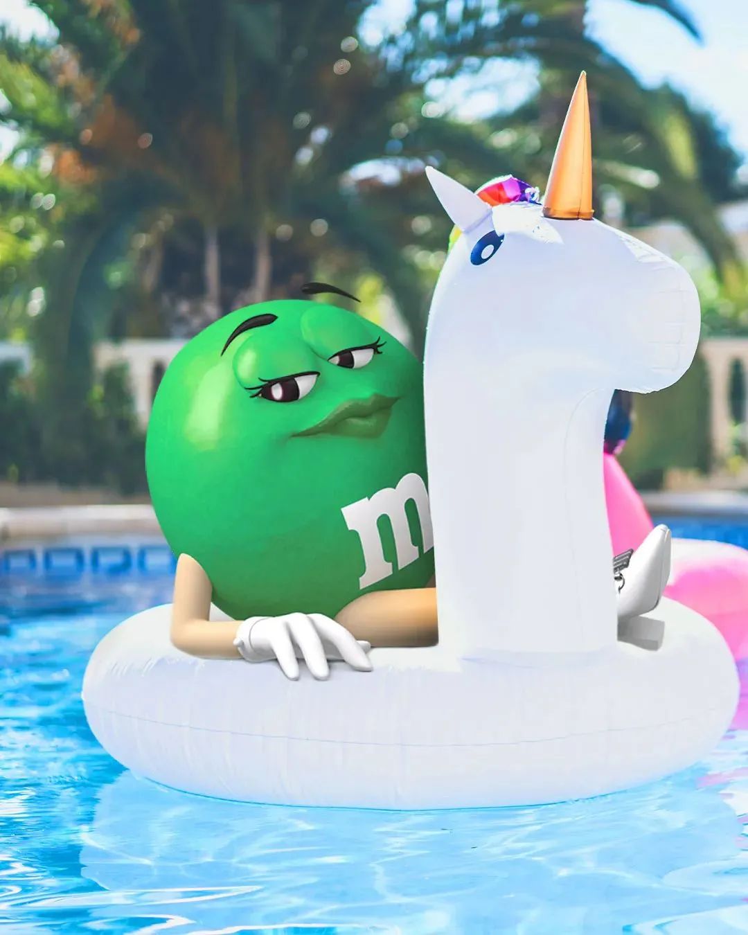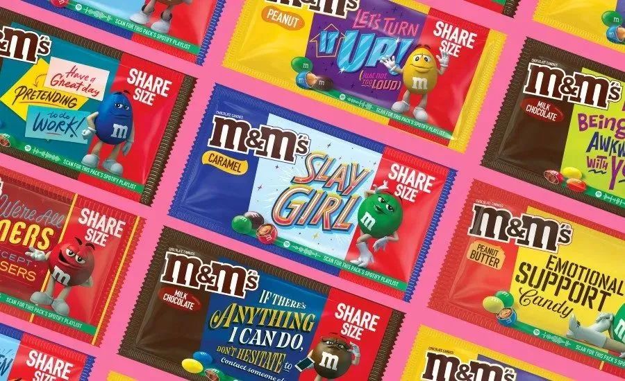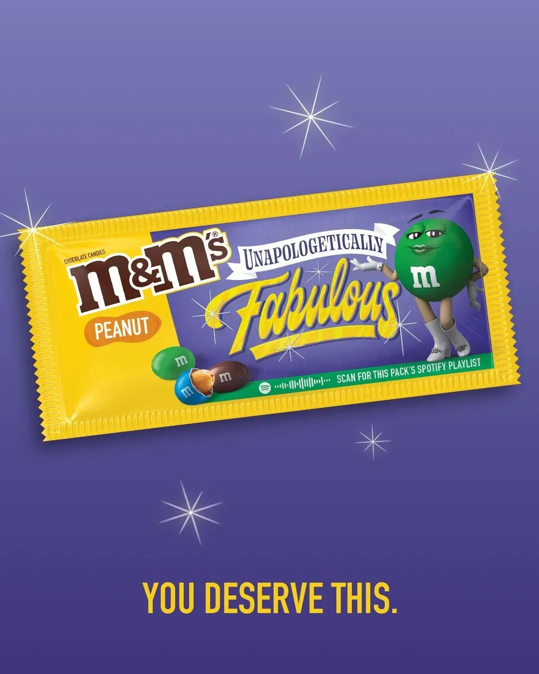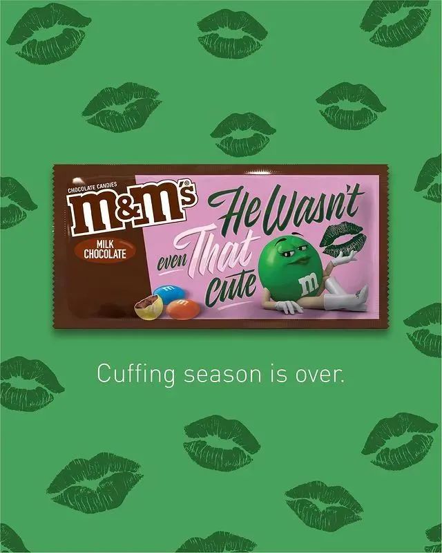 麦当劳的广告把金拱门标志玩出了花样,熟悉的LOGO可以出现在任何意想不到的地方,无处不可的麦当劳就是要超越你的想象。M&M巧克力豆公司今年最新推出四款限量版的专辑艺术包装,COSPLAY四个经典或流行歌手的唱片专辑封面。黄色M豆代表英国歌手David Bowie的 专辑「Aladdin Sane」,脸上画着歌手标志性的闪电状红色油彩;以纸扇掩面的绿色M豆是重现美国乡村歌手Kacey Musgraves的「Golden Hour」专辑造型。绿色M豆披着白色斗篷升上云端的灵感来自西班牙歌手Rosalía的专辑「El Mal Querer」;花生味的包装上只有一个黑色的神秘M豆剪影,是美国歌手H.E.R的首张同名专辑的封面设计。M&M巧克力豆公司把IP的力量发挥到极致,几十年间,这六个大号的M豆已经成为全球最有辨识度的形象之一。