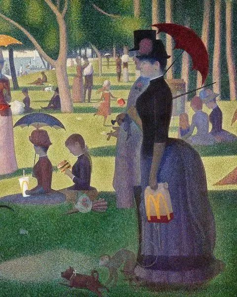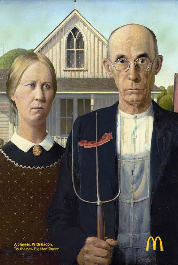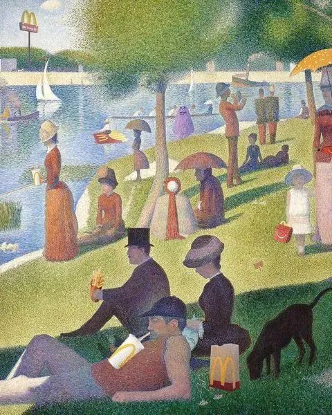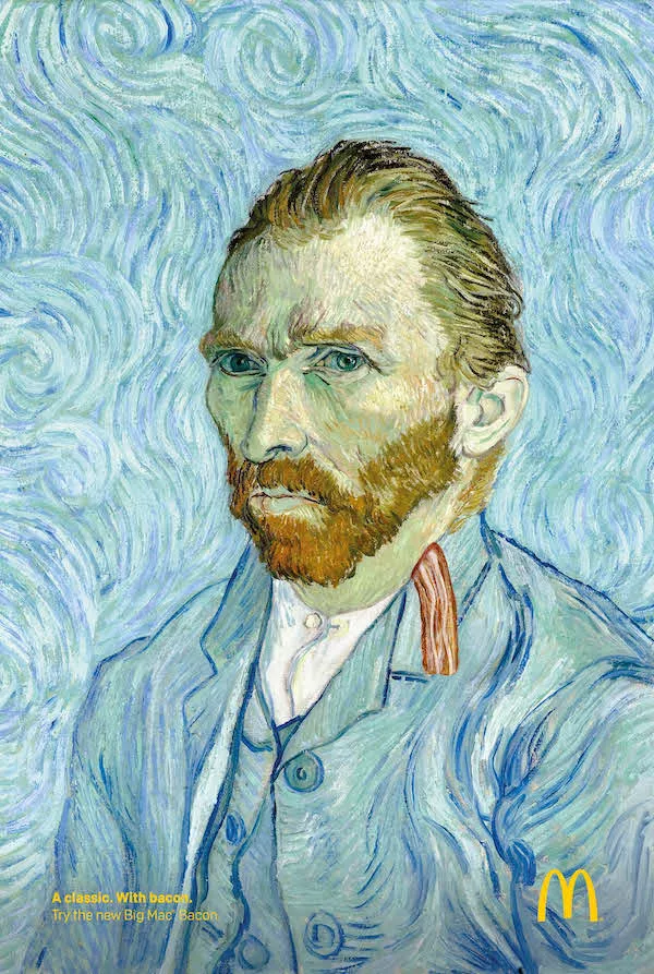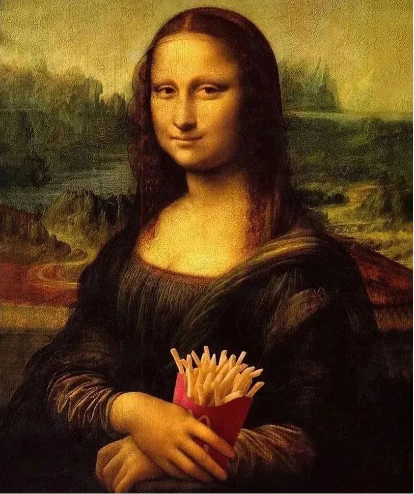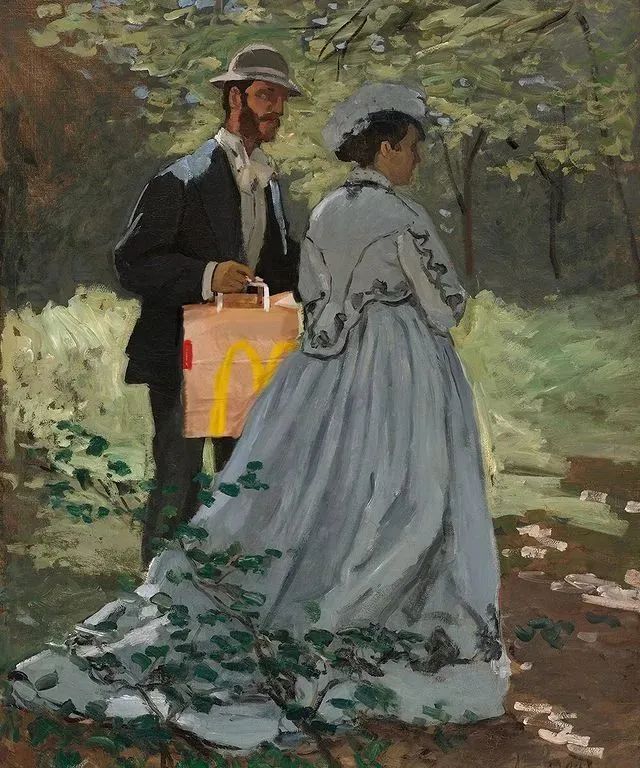 除了花心思做平面设计,为了融入不同的文化背景,麦当劳还大胆改用艺术作品,让麦当劳的汉堡、薯条、麦乐鸡等招牌快餐登上世界名画,完全不会感到违和。