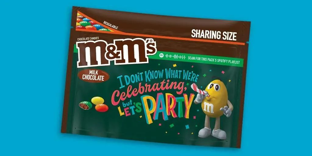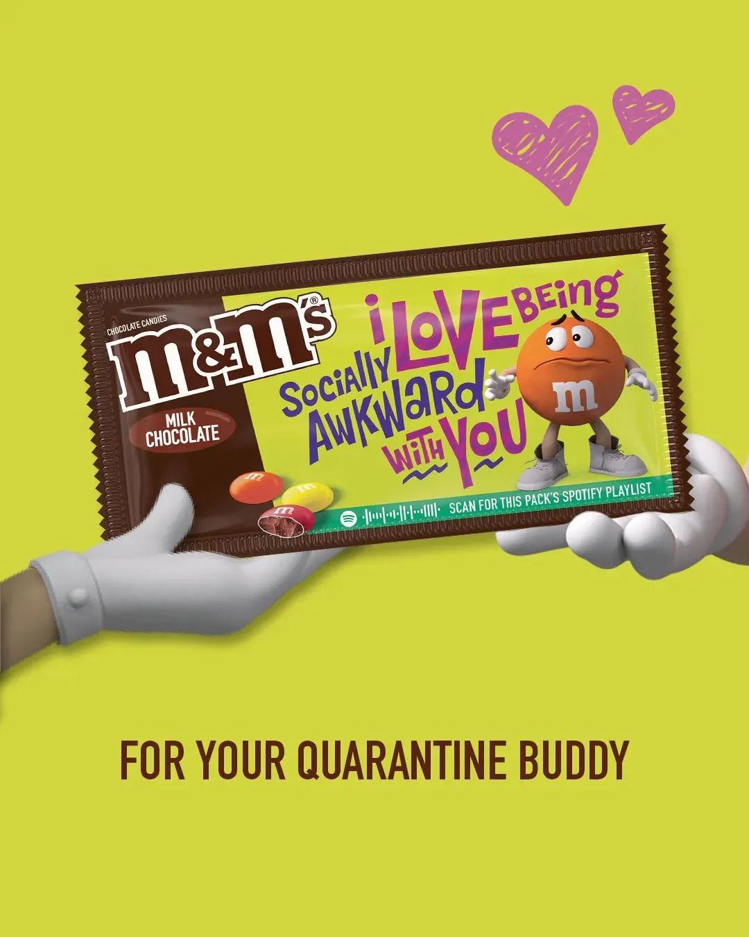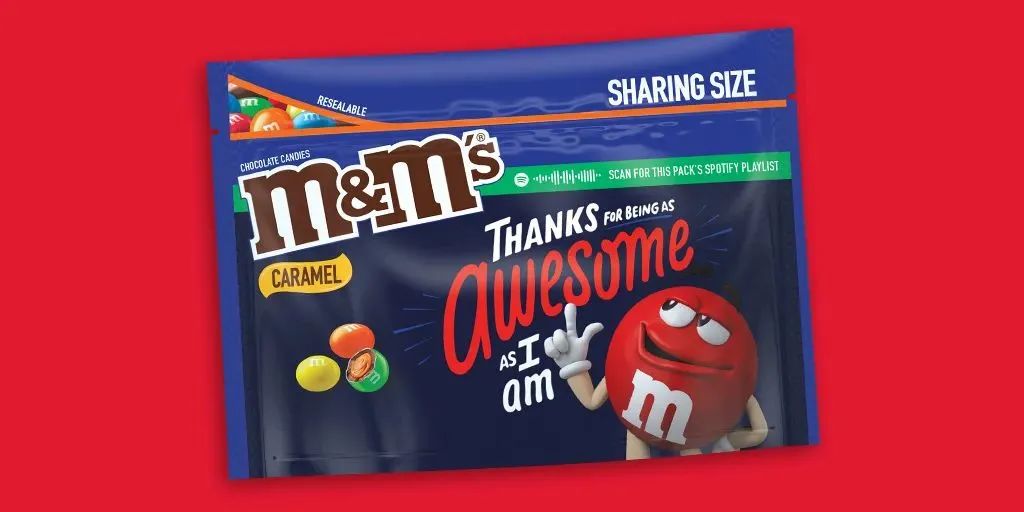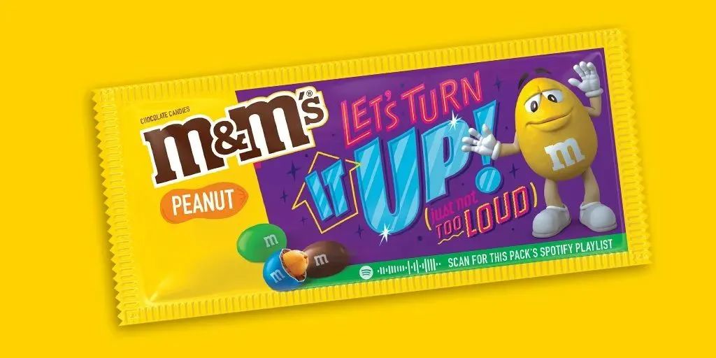 除了拍广告外,M&M还与SPOTIFY音乐软件合作,只要扫一扫巧克力豆包装上的条码就能播放歌曲,让M豆传情,说出爱人的心声。