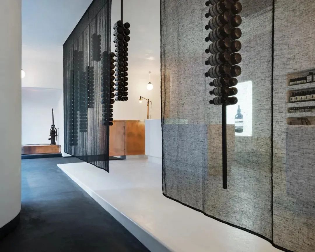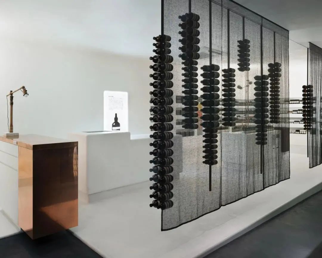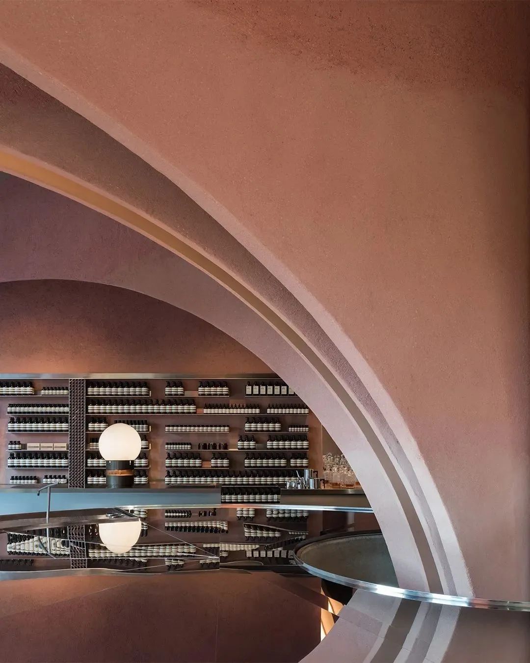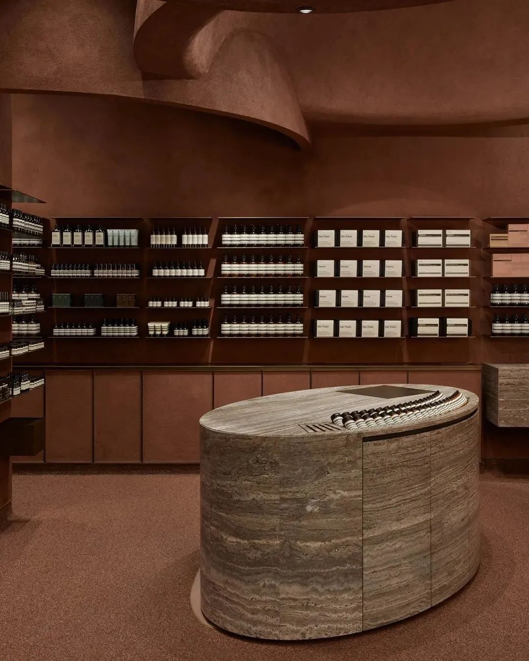 Aesop门店坐落于蒙特利尔著名的爵士乐街区Petite-Bourgogne,这里汇聚众多经典的老牌爵士俱乐部。为了更好地融入爵士乐文化,设计师采用低调的深墨色绒面皮革为主配以黄铜金属与浅色橡木,打造爵士俱乐部的复古质感。Aesop在韩国首尔开设了9家门店,即使在同一个城市,落在每一个街区开设的门店风格也各有千秋。正如创始人Dennis Paphitis曾在采访中所说:Aesop并不想为门店选择一个橙或绿那样的标准色,而是融入城市的街道,以当地的设计语言表达品牌想做的事。不过,Aesop在全球门店内都会设置一个洗手池,旁边摆放着各种可供试用的产品,确保顾客随手选取产品试用。而且,设计师在Aesop的洗手池设计上也会花费心思,比如德国柏林门店用的是一个20世纪50年代的水槽,是设计师从一个当地老农场上回收的。