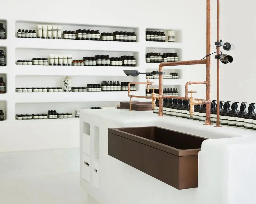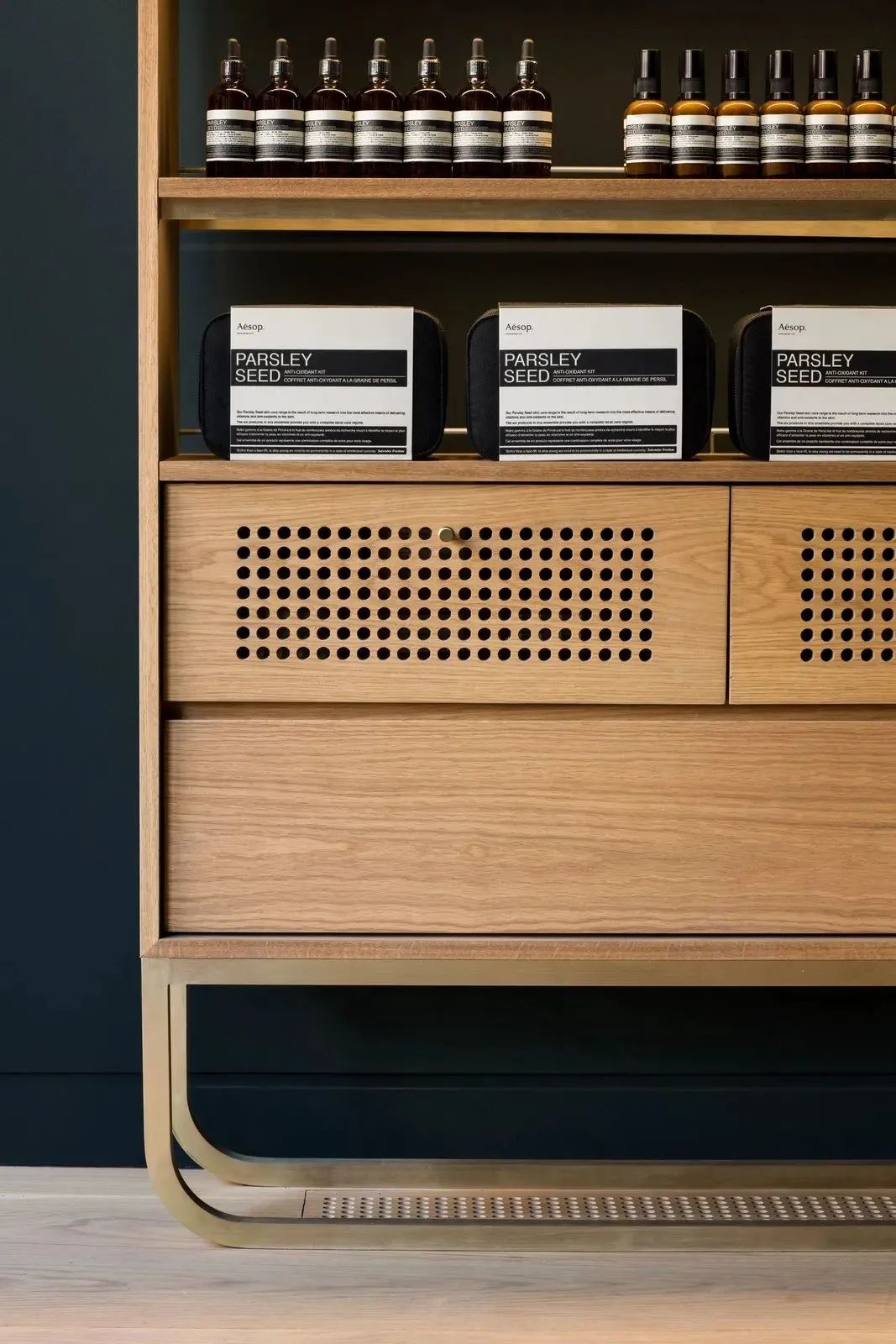 在第一年首发的ikéa-nytt(宜家新品)里面,除了能看到家具以外,也刊登有不少化妆品、包包、文具、服饰等,更像是一本生活方式杂志。第二年的《宜家产品目录》封面上是经典的棕色高背扶手沙发椅 「STRANDMON CHAIR」,是宜家创始人Ingvar Kamprad的最爱。这款沙发椅当年被描述为“皇室般的体验” ,王座的设计特征和舒适度被保留下来,直到现在依然能在宜家找到这款沙发椅。不同于50年代的出版风格,《宜家产品目录》的风格到了60年代变得丰富多彩。到了70年代的版式设计也从横版改为竖版,从1977年开始的年刊封面风格基本就这样定了下来。从80到90年代的看到的宜家家居风格逐渐转为是温馨舒适的家庭风,其家居风格在逐渐定型。《宜家产品目录》以1994年这一期目录为分水岭,LOGO的字体被规范,也就是现在熟悉的宜家风格:清新简约。进入21世纪以后,宜家的产品网站开始启用,这本纸质的产品目录依然被保留下来。每一本近300页的《宜家家居目录》都是由280多位室内设计师和摄影师,花10个多月的时间精心打造而成,也成为纸质印刷爱好者留在书架上的精品。Aesop,这个来自澳大利亚的有机护肤品牌,在天然植物护肤的基础上率先推行有机理念。30多年来,他们从来不做宣传广告,拒绝标准化。最重要的是,Aesop与全球各大建筑师合作设计门店,从当地选取建材与灯具,将当地的文化和历史背景融入到每一家门店的设计中,让全球每一家门店都成为独一无二的设计空间,也成了众多室内设计品牌分享的经典案例。Aesop坚信设计哲学与品牌本身息息相关,在全球各地开设的超过200家门店,每一家门店都被赋予了独特的风格,把品牌的美学精神真正融入到当地文化特色的表达。不需要广告牌,全球门店的个性化风格就是Aesop最好的广告。