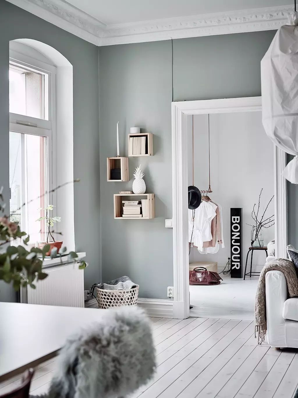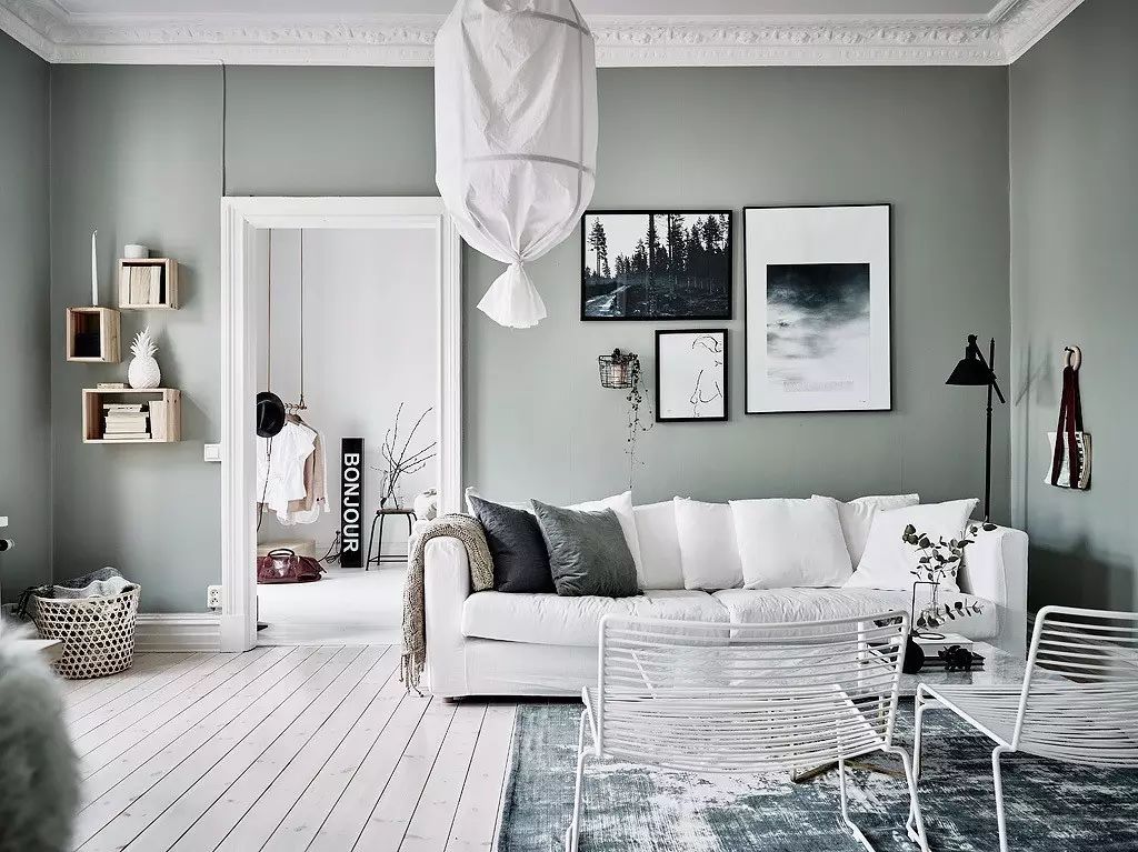 整面墙选用了冷灰绿色,整个空间透着清冷高雅的气息,家具为整个空间增色不少。
