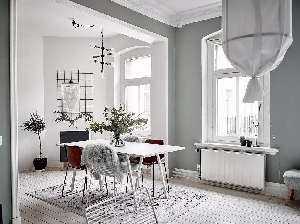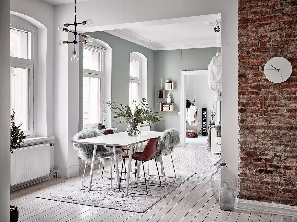 这是斯德哥尔摩的一处公寓,入口是主人最喜欢的地方,皮草坐垫增加空间的摩登现代气息,与工业质感的文化墙形成了鲜明的对比,和地毯的颜色款式都遥相呼应。透过大面积的窗户,室外的阳光可以充沛的洒入室内。