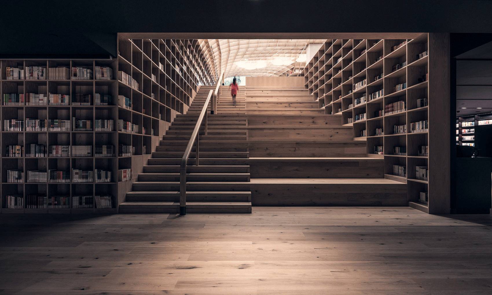 ▼ 连接上下层的阶梯,书架、楼梯和阅读区浑然一体