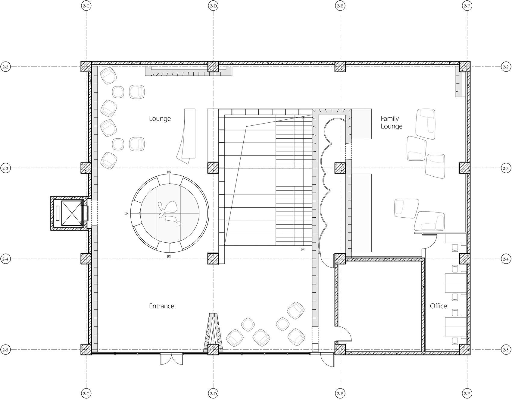 本项目是古北一号社区泛会所的最后一部分,泛会所已经将健身、瑜伽、SPA、泳池、咖啡简餐、儿童游乐等其他空间建设完成。不过和所有高级小区一样,但泛会所并没有能够极大发生让社区居民交流的化学作用,现实是豪华的背后总是独立家庭互不相干的孤寂。发展商最后决定建设这个邻里中心,目的是希望居民能够在这里互相认识。但什么样的场所能够吸引居民,会议,阅览室,童书馆,画廊,视听室?或者索性综合有之!这种对未来的期许以及执行中的不确定反而让建筑师有更大的空间去探索更社会化的命题:在商品房小区仅对内部开放的客观条件下,如何用建筑作为工具去激活社区中心的意义,来促进邻里的交流。