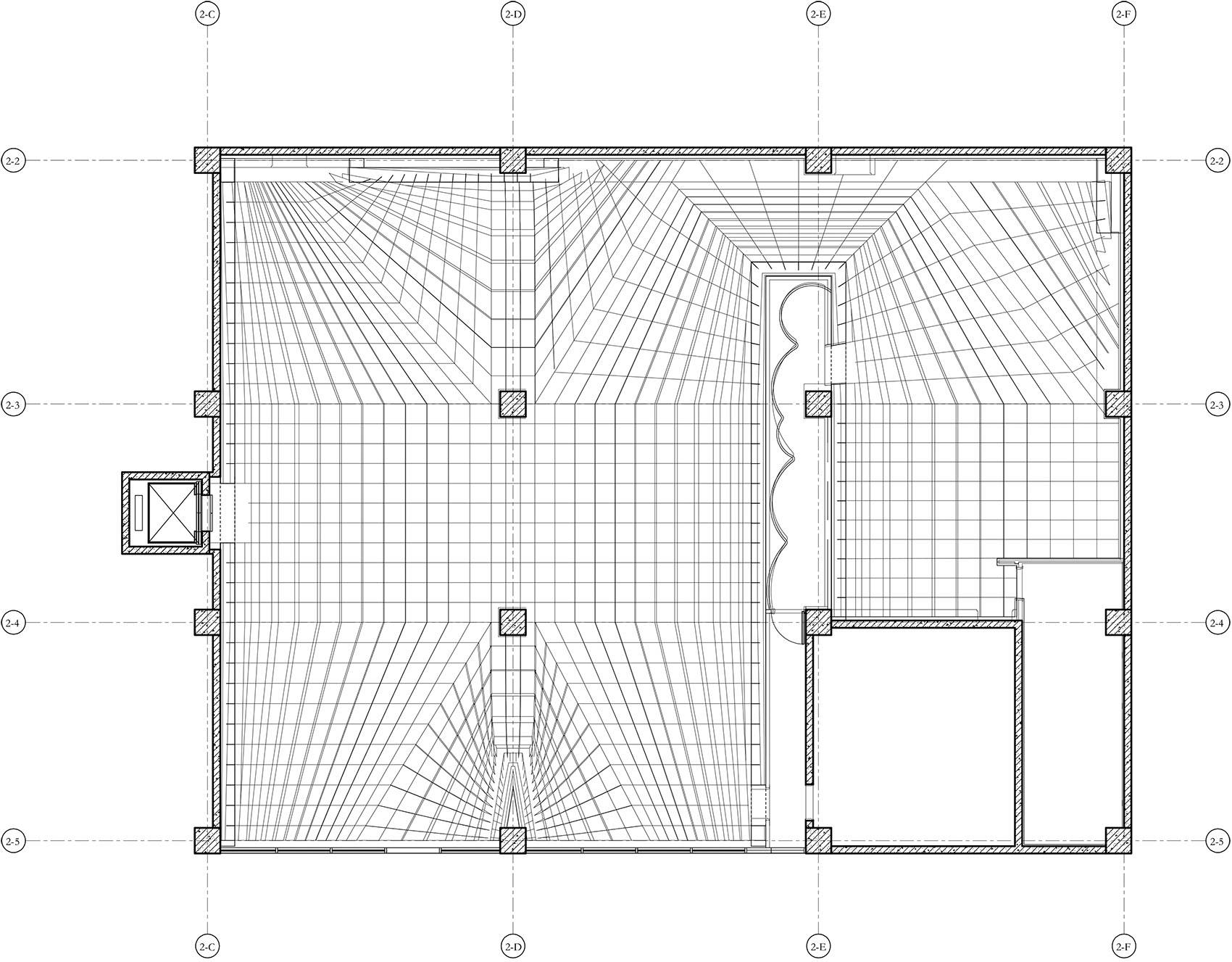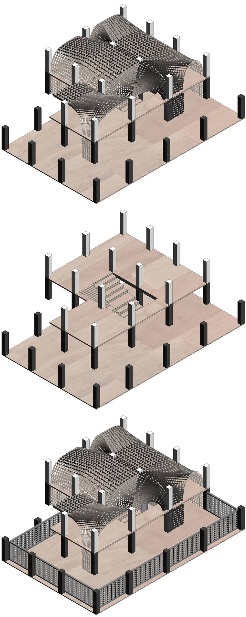 为了实现这样一个柔软自由的场所,我们使用了大量时代前沿的数字化理念和技术,每一片曲线、企口都不尽相同的板材都通过编程设计优化,由数控机床直接加工生产,现场安装。尽管在环境塑造上,我们营造了非常人文的场所意境,但我们在设计和建造的方法上,使用的确实具有时代感的科学技术—这也是对偶。