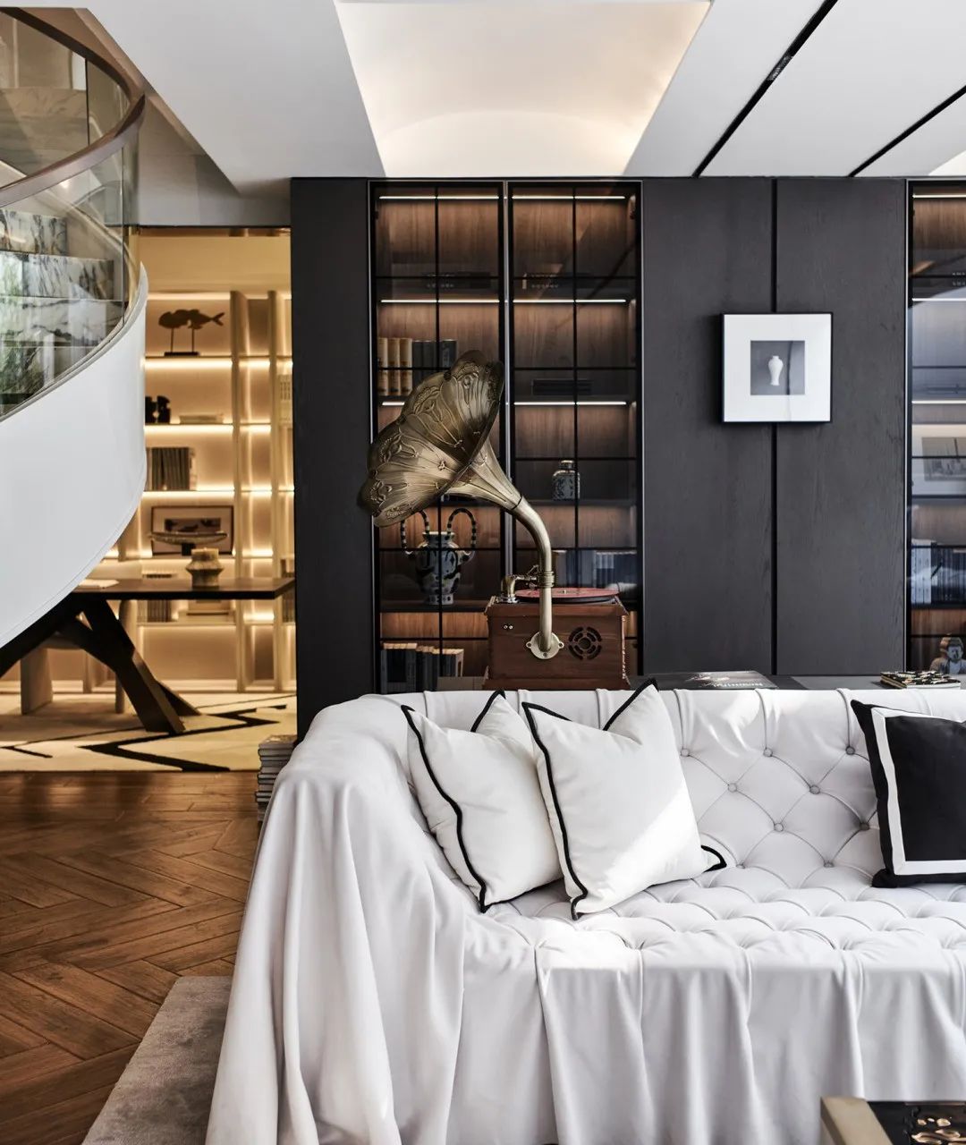 这个充满弧线的空间有着别样的韵味,优美的弧线形态各异、变化多端,加上有规律的布局和陈列,塑造了这一个节奏感强烈的房间。