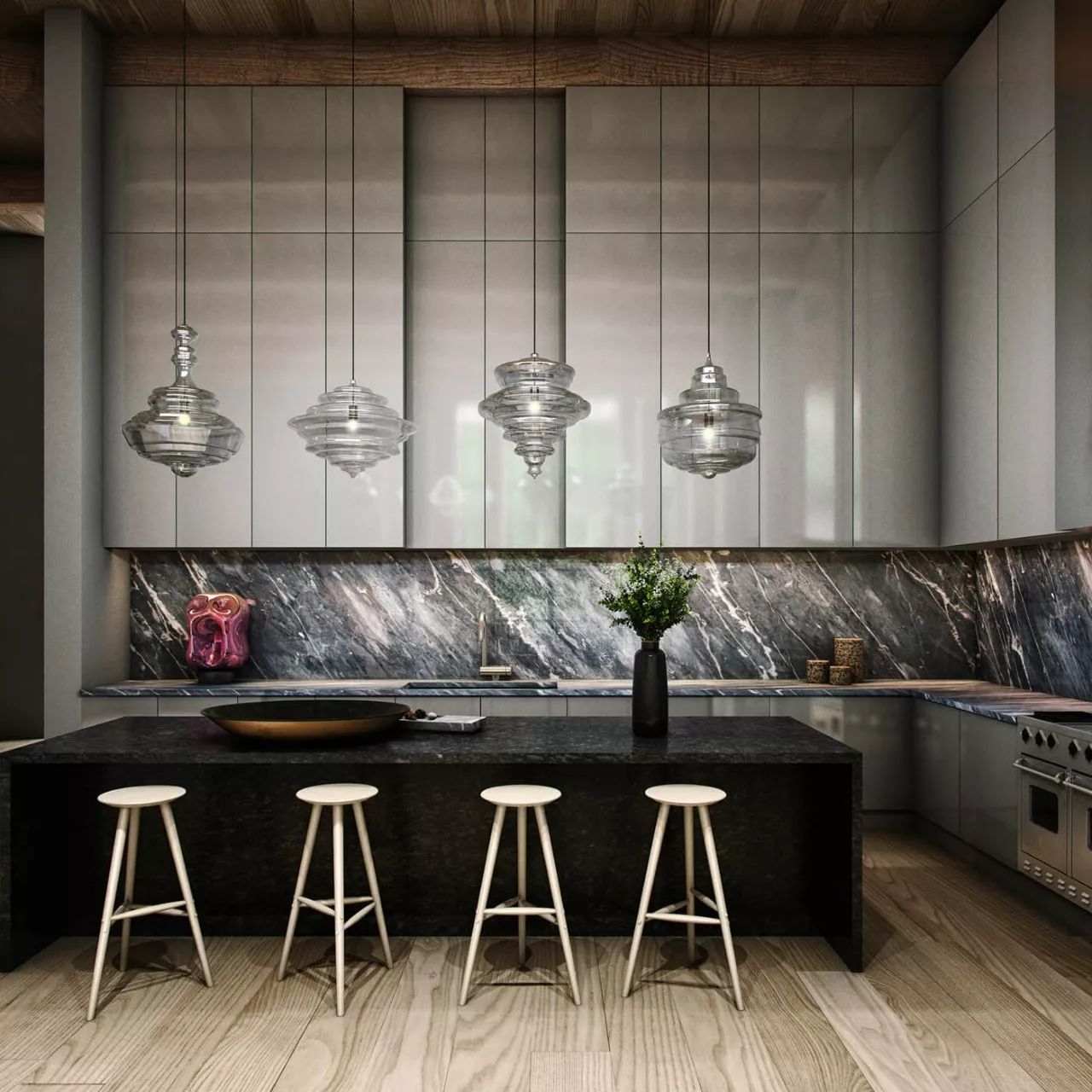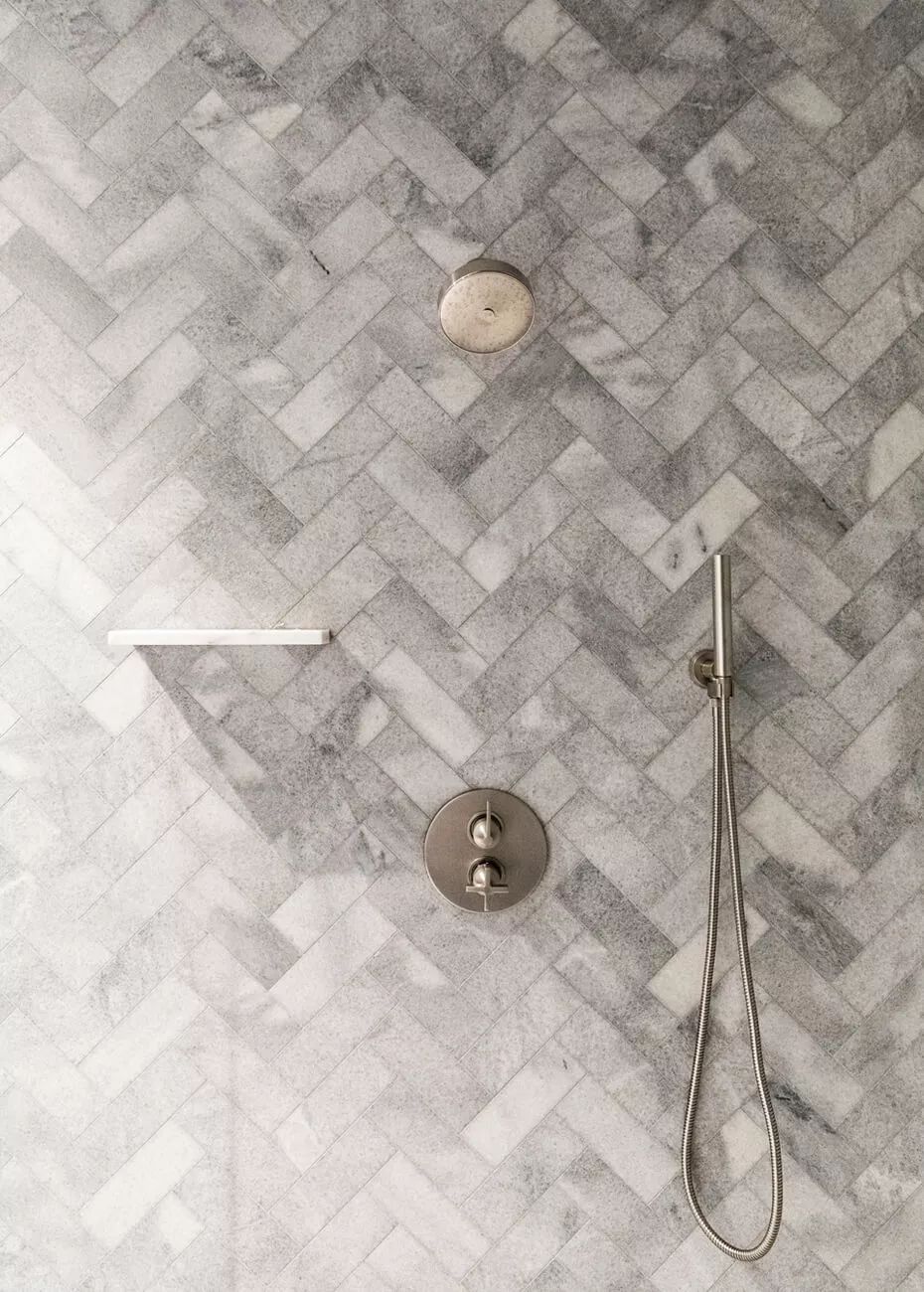 铸造青铜,磨砂大理石,人字形瓷砖和拉丝镍给家庭带来精致,光滑的感觉。