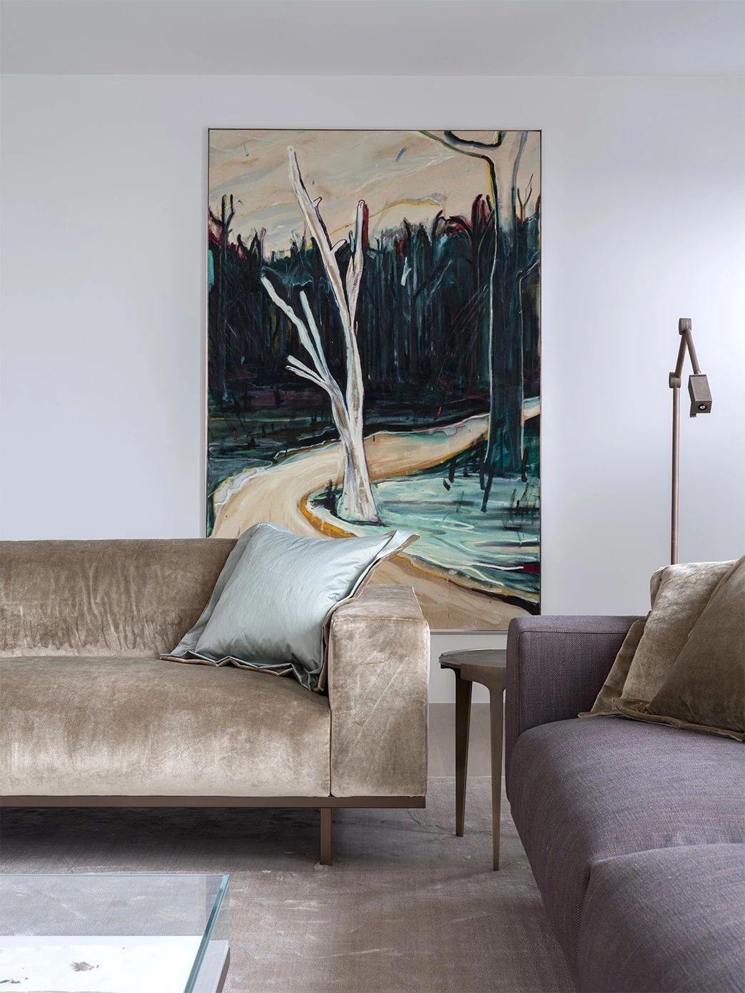 在当代背景下,选择了柔和的奶油色,摩卡咖啡色和古铜色的金色色调营造出奢华温馨宁静的氛围。