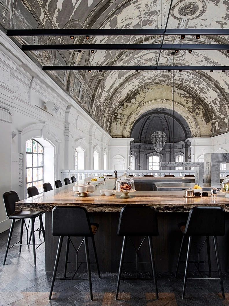 米其林三星级厨师Sergio Herman和厨师Nick Bril三年前在安特卫普一个神话般的地点与Piet Boon一起创造了“精致美食与摇滚乐”的餐厅愿景; 前军事医院的教堂。Studio Piet Boon,负责The Jane的室内设计和造型,从那以后一直致力于将教堂独特的变身成为一个具有国际魅力的高端现代餐厅,其中奢华和经验是关键。