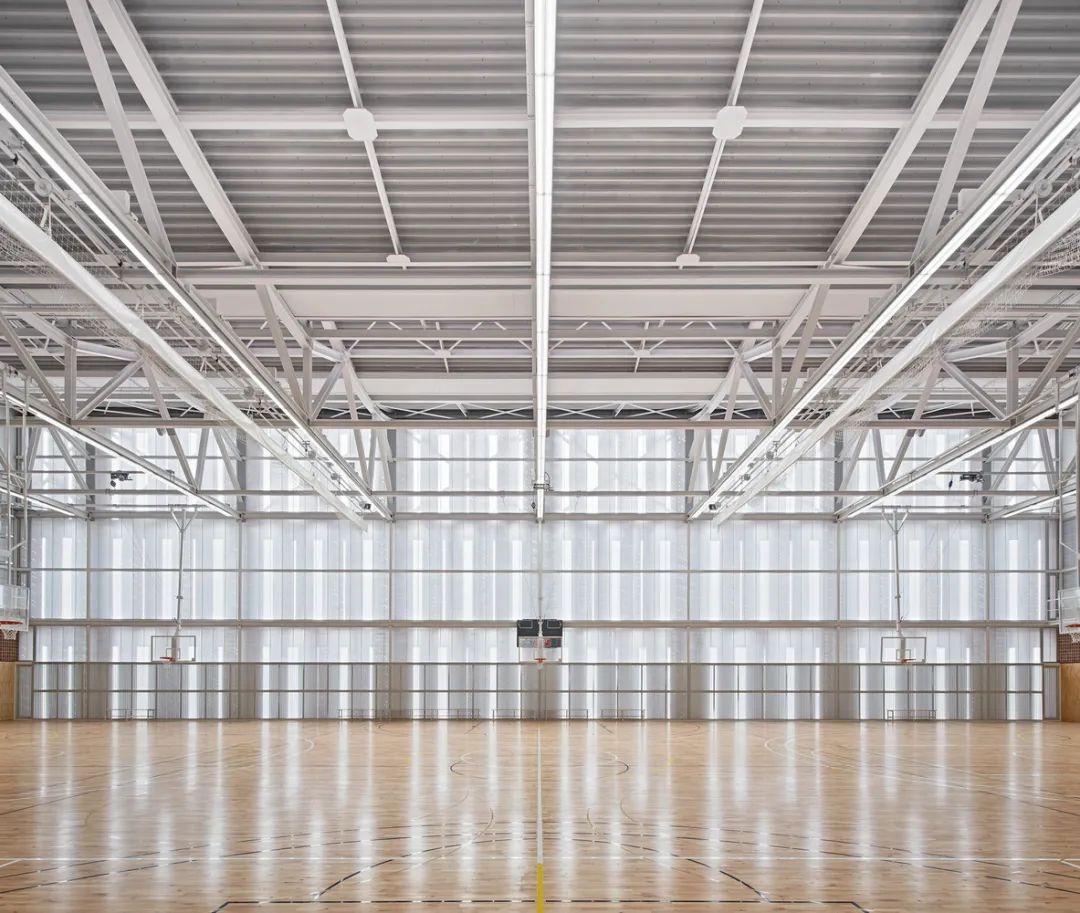 建筑师花了6个月的时间,才完成了墙面上的雕刻工作。光透过大小不一的微孔,就像阳光洒进树林,在室内投射下一地斑驳。墙的东西两侧,孔隙较为密集,而南侧则比较稀疏,光线会更明亮。这样的设计,是为了营造亚当夏娃从至暗走向人类文明开端的场景变幻。教堂内部的整体结构,几乎完全由木材支撑,更能让人产生置身于森林的错觉。今年的评选中,巴塞罗那社区体育中心击败了由隈研吾设计的东京奥运会主场馆日本国立竞技场,成为体育建筑类大奖的得主。体育中心占地7237平方米,包括3个运动场和一片公共聚集场所。由于它所在的街区比较拥挤,体育中心的一部分被放在了地下。顶部安装了玻璃天窗,并以植物遮盖,既保证了采光,又可以避免阳光直射、球场温度太高。