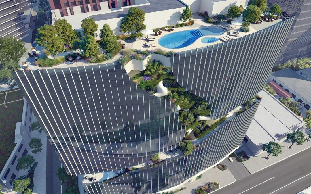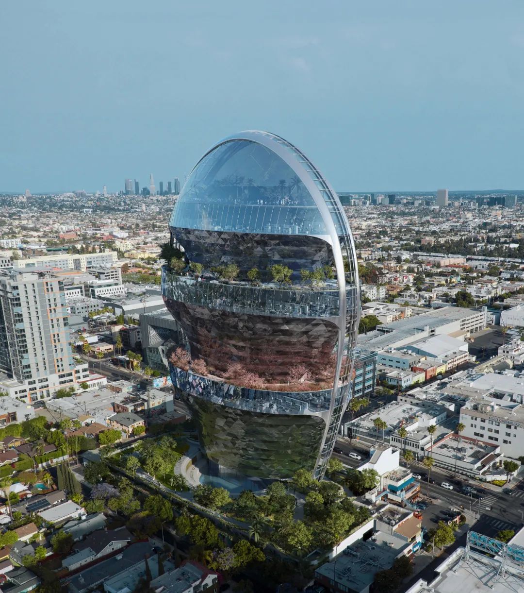 除此之外还有另一个暂定于好莱坞的日落大道的作品,一座22层的办公楼,叫“The Star”,也是将植物完全融进了建筑之中。