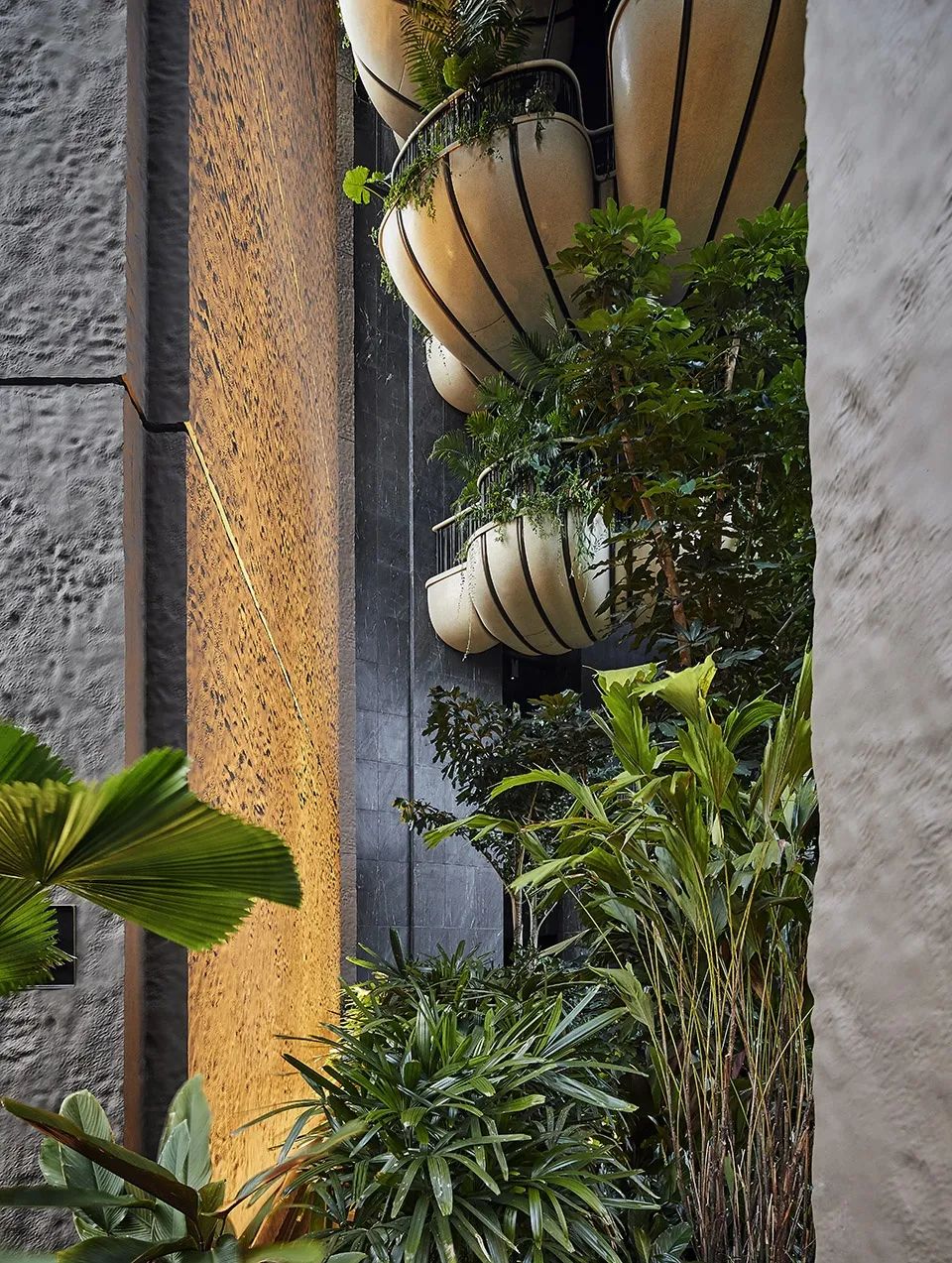 双层高的阳台种植着超过20种植物,不仅为每间公寓带来了宁静宜人的氛围,还起到遮挡烈日的作用。