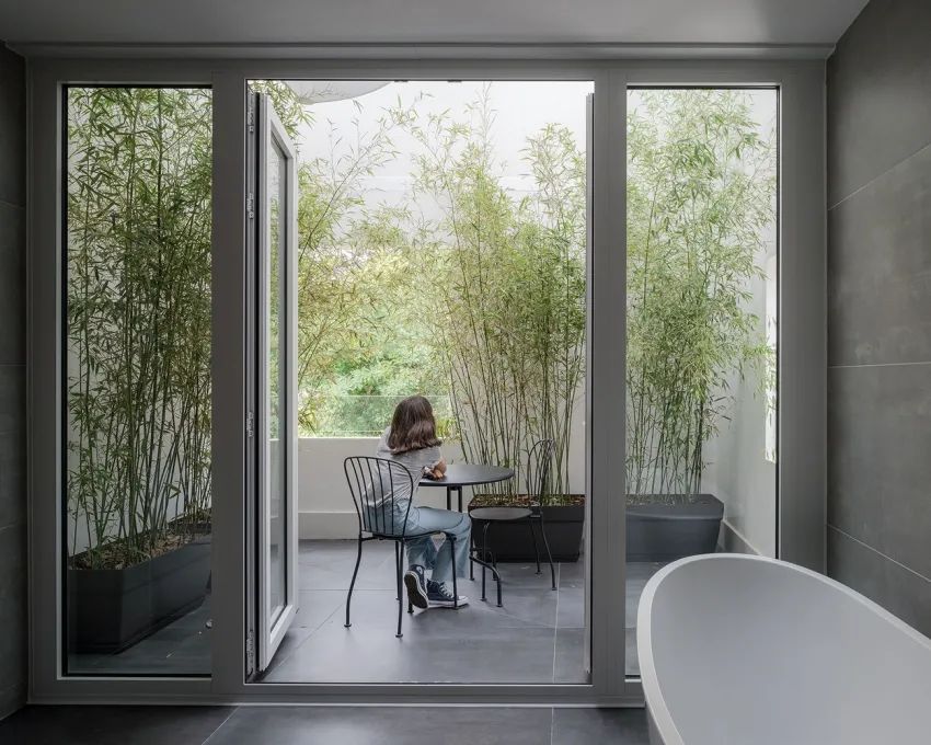 被双层高墙包围的露台,留有一开口可欣赏清新绿意