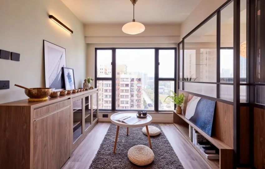 公私领域之间以镶嵌大片玻璃的拉门作为轻隔屏