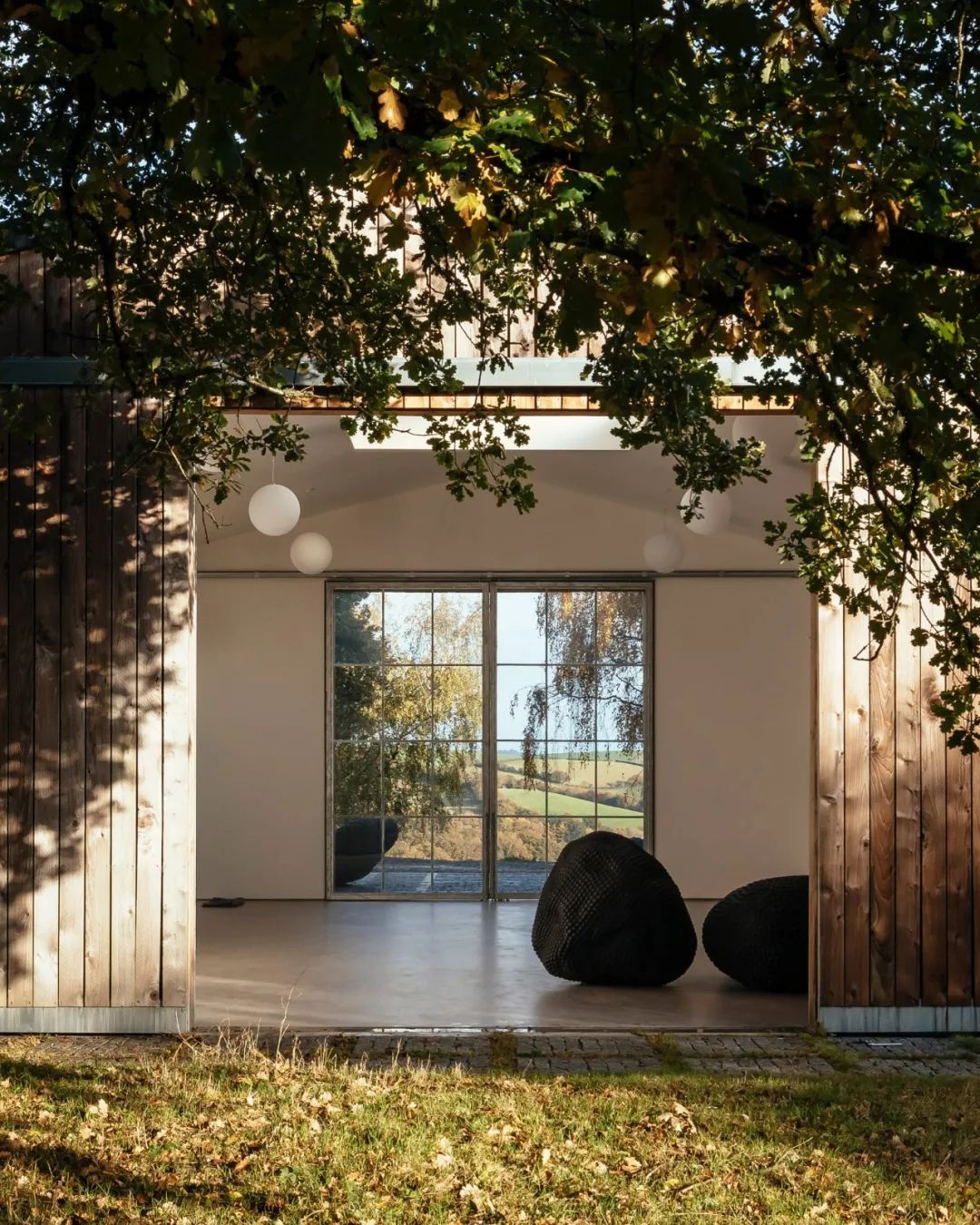 谷仓的外观如同一个密封的木盒,Thomas 希望可以保留其农村房屋的特征,在设计之初考虑到可回收性,保留了谷仓原有的大部分软木框架、屋顶和覆层。外立面采用了垂直的雪松条木,屋顶边缘用镀锌钢条收口,起到了保护木材的作用。与此同时,他又希望内部空间可以充满自然光线,所以对于门窗进行了重新设计。巨大的可移动木门,为室内带来开阔的视野。