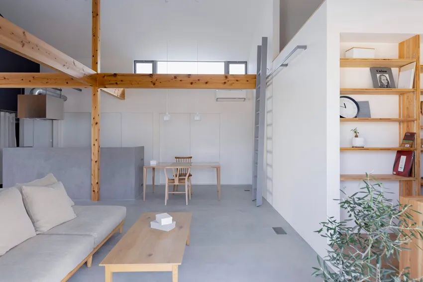 亦延续相同肌理实木,在屋内形塑木构造梁柱造型
