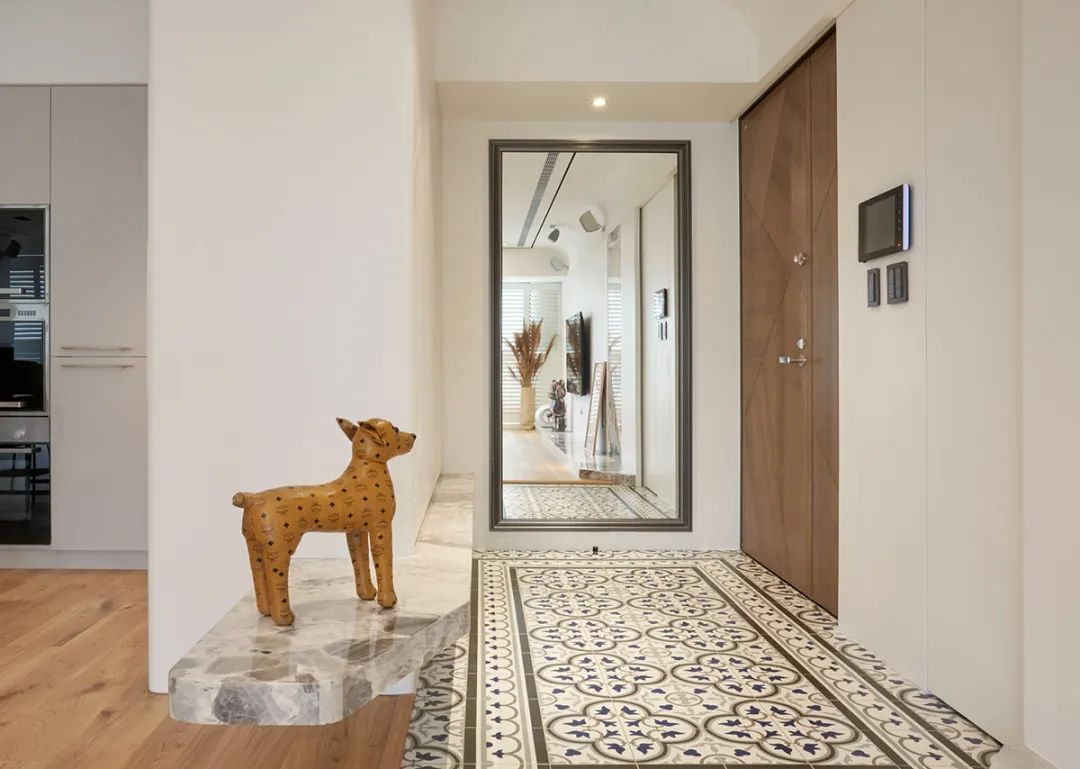 于尽头处落下全身镜,拉深了空间效果