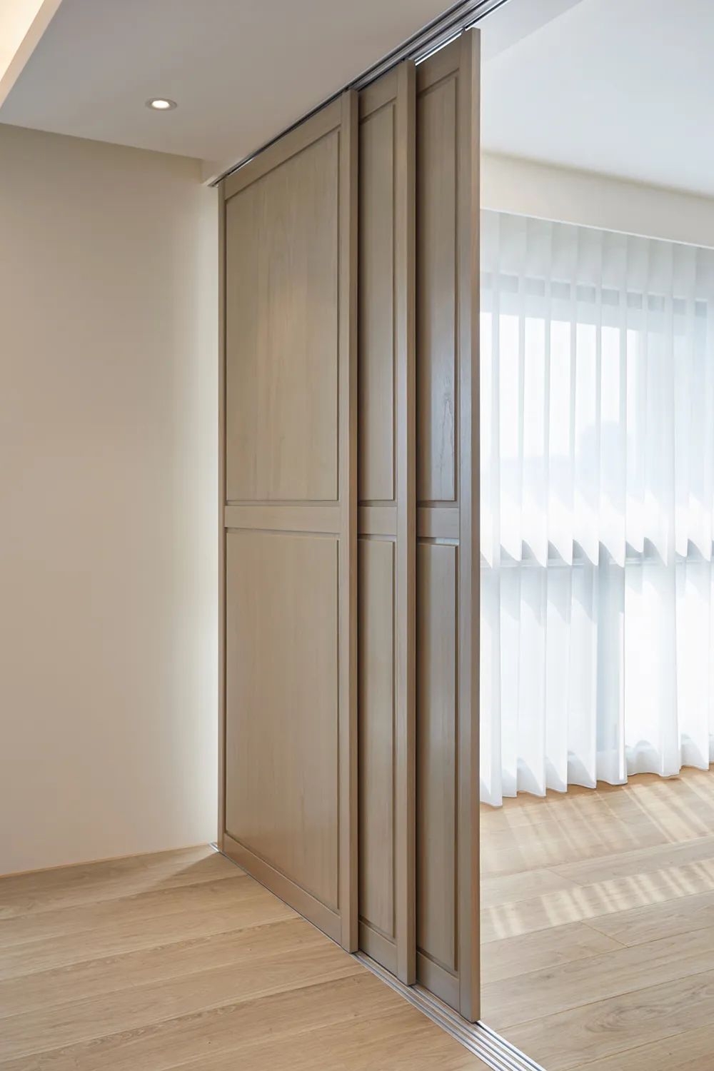 并以三片实木门片收折,可俐落全收于一侧