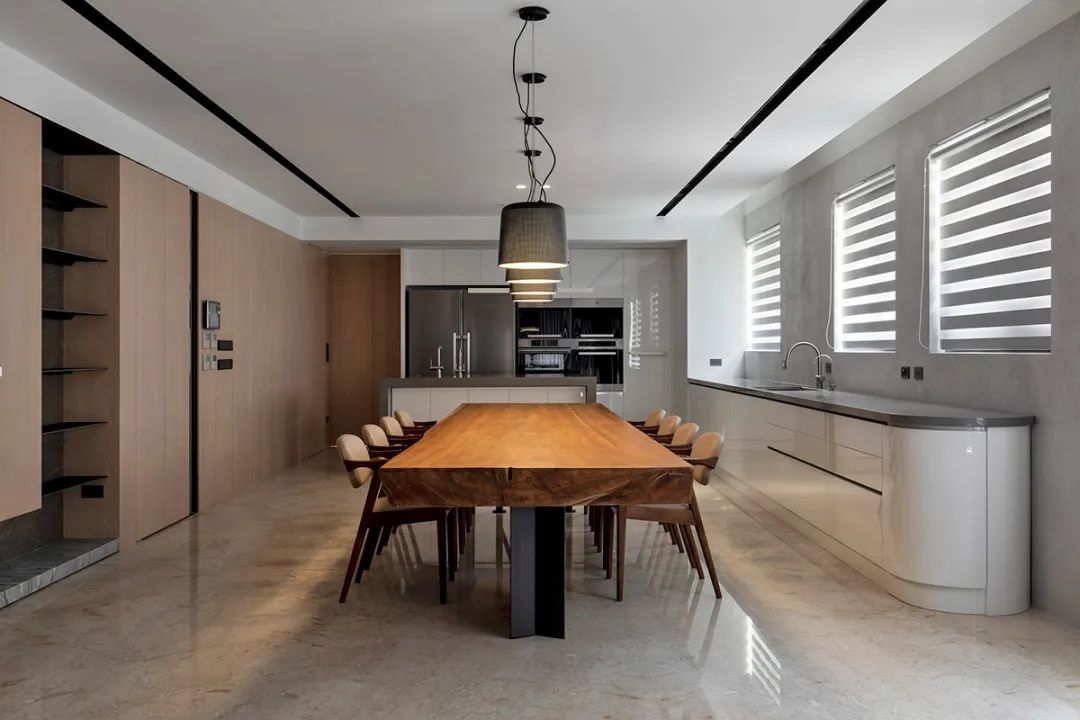 循着梯身而上,映入眼帘的即是可容纳三代同堂的长桌