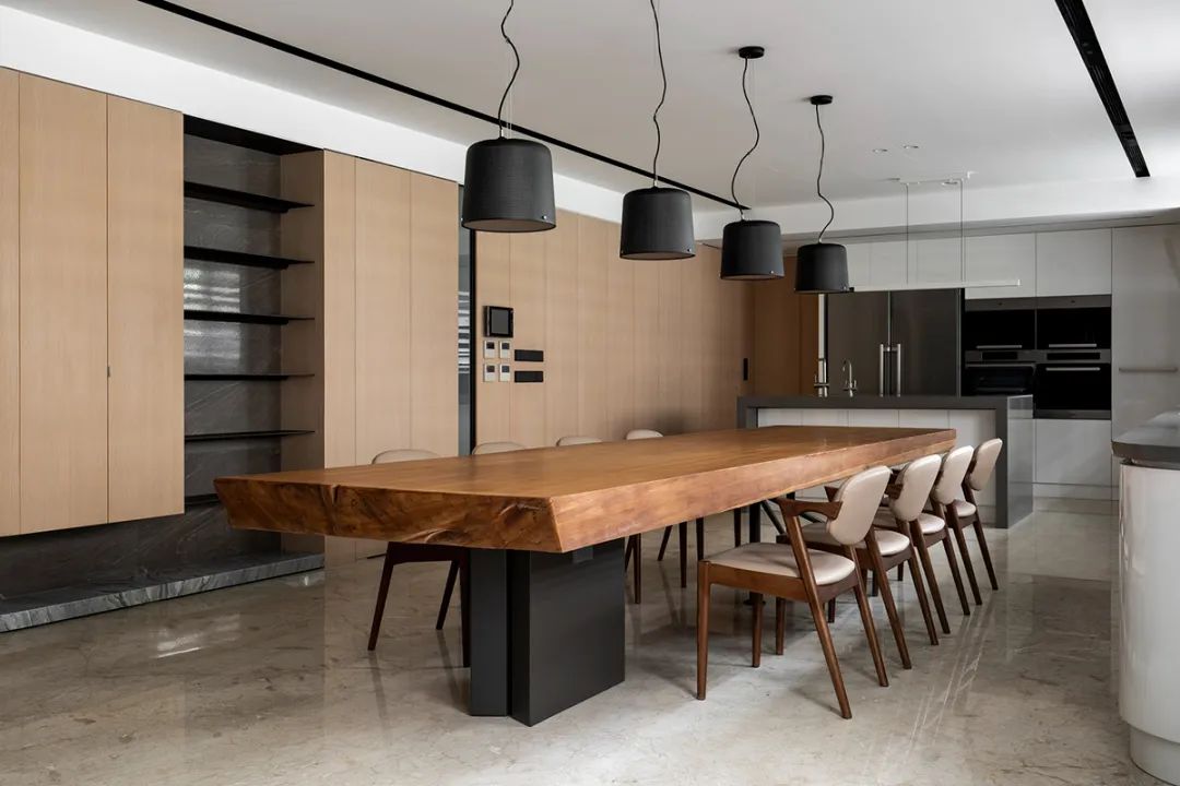 风格强烈的吊灯垂落而下,点亮温馨餐叙气氛