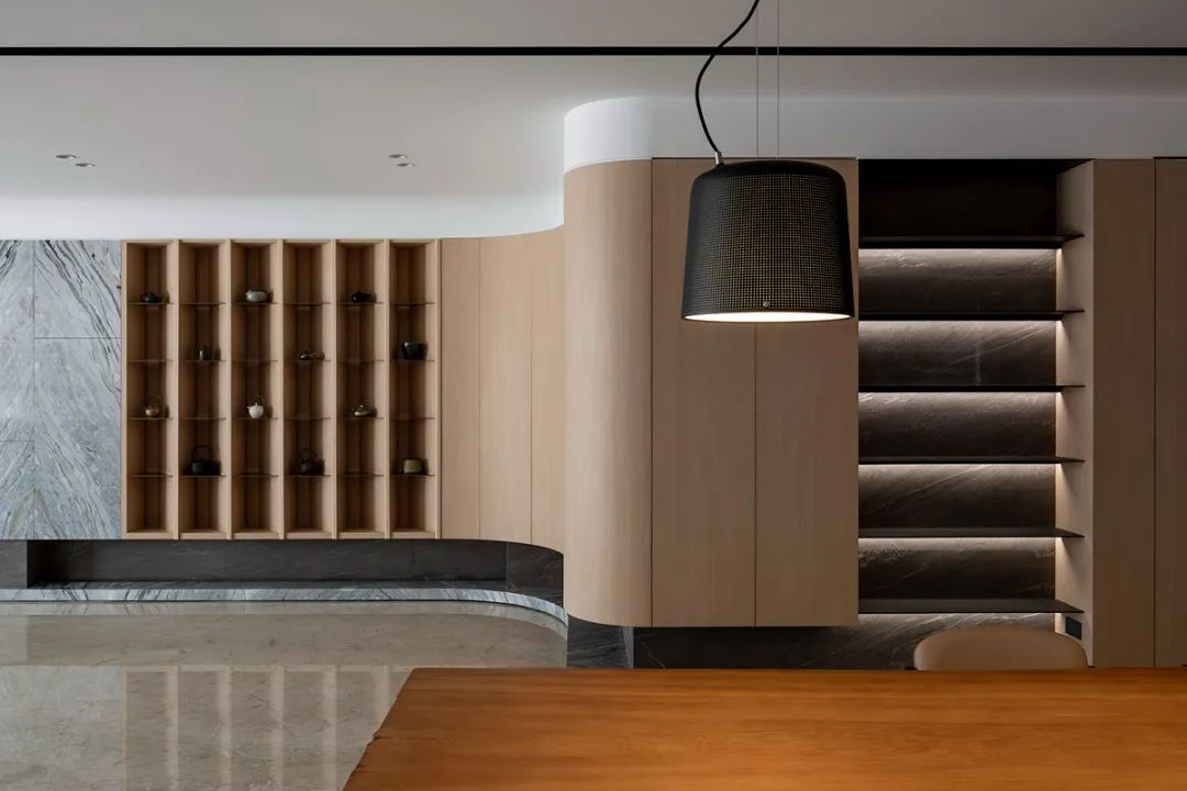 恰与几何方形的俐落空柜成为对比