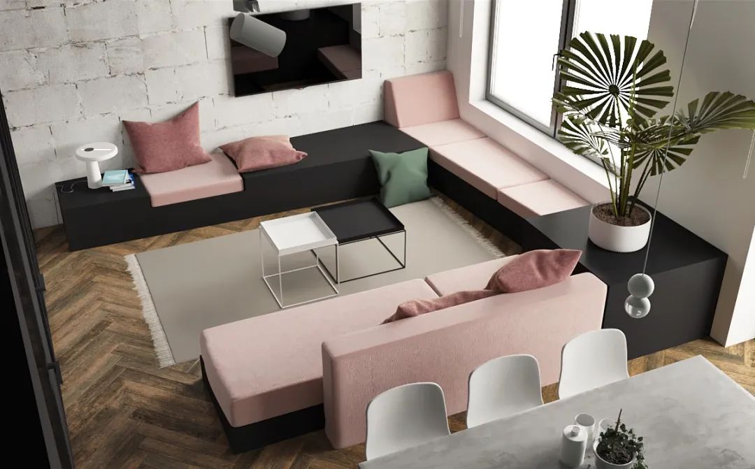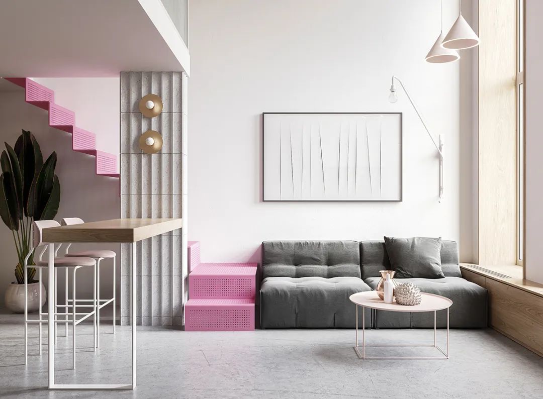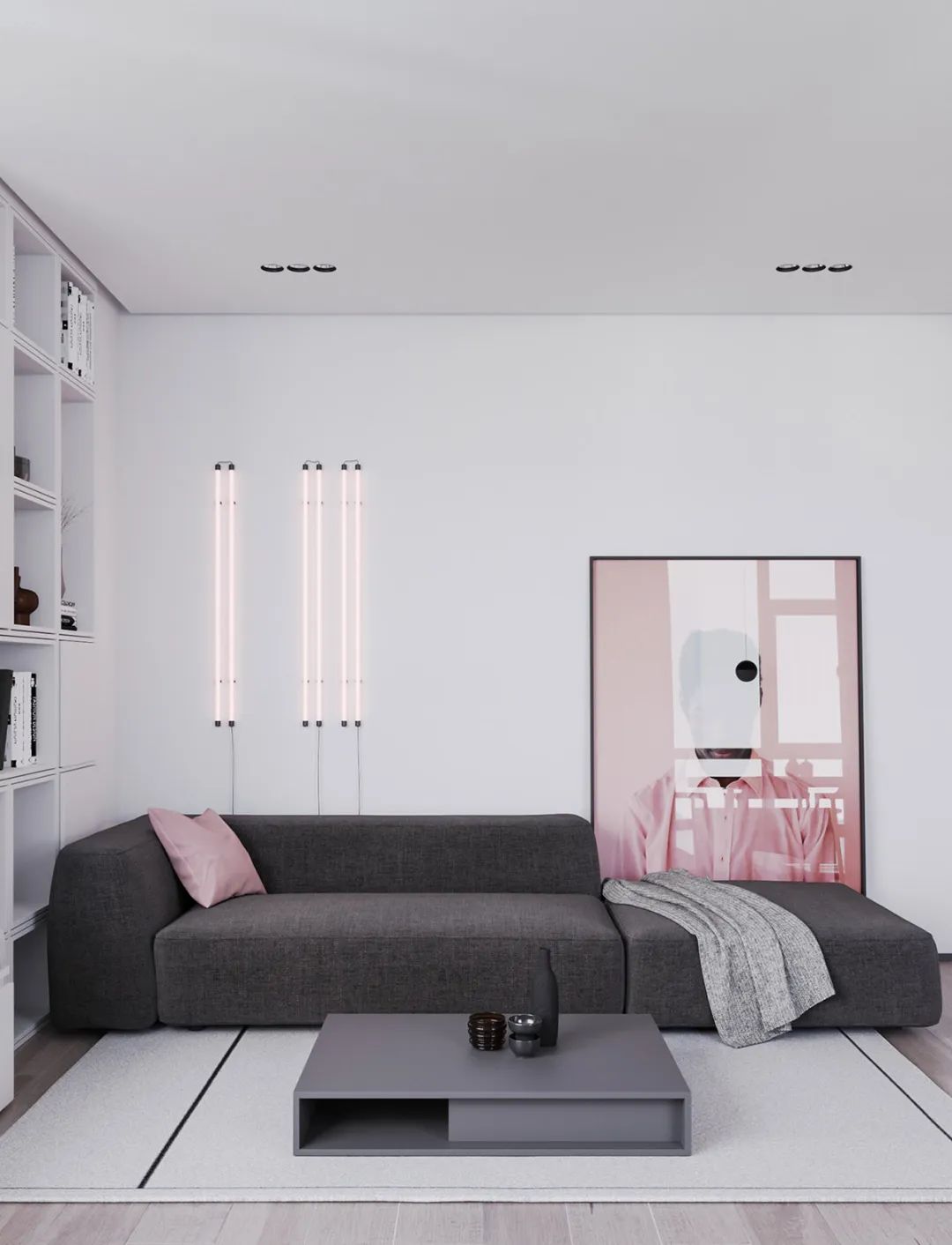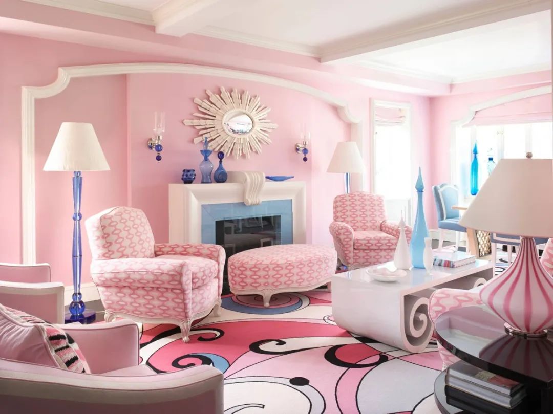 还有一大堆粉红色的家具和一些客厅配饰来布局外观