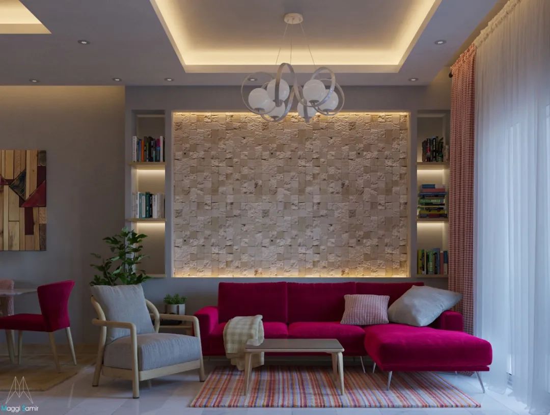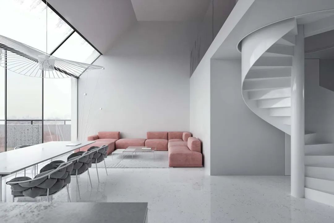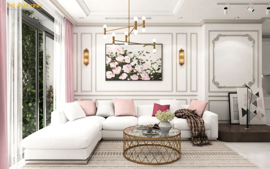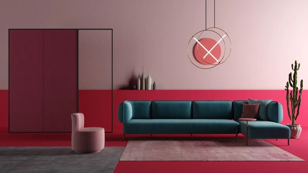还有一大堆粉红色的家具和一些客厅配饰来布局外观