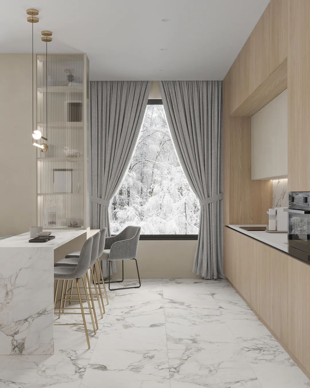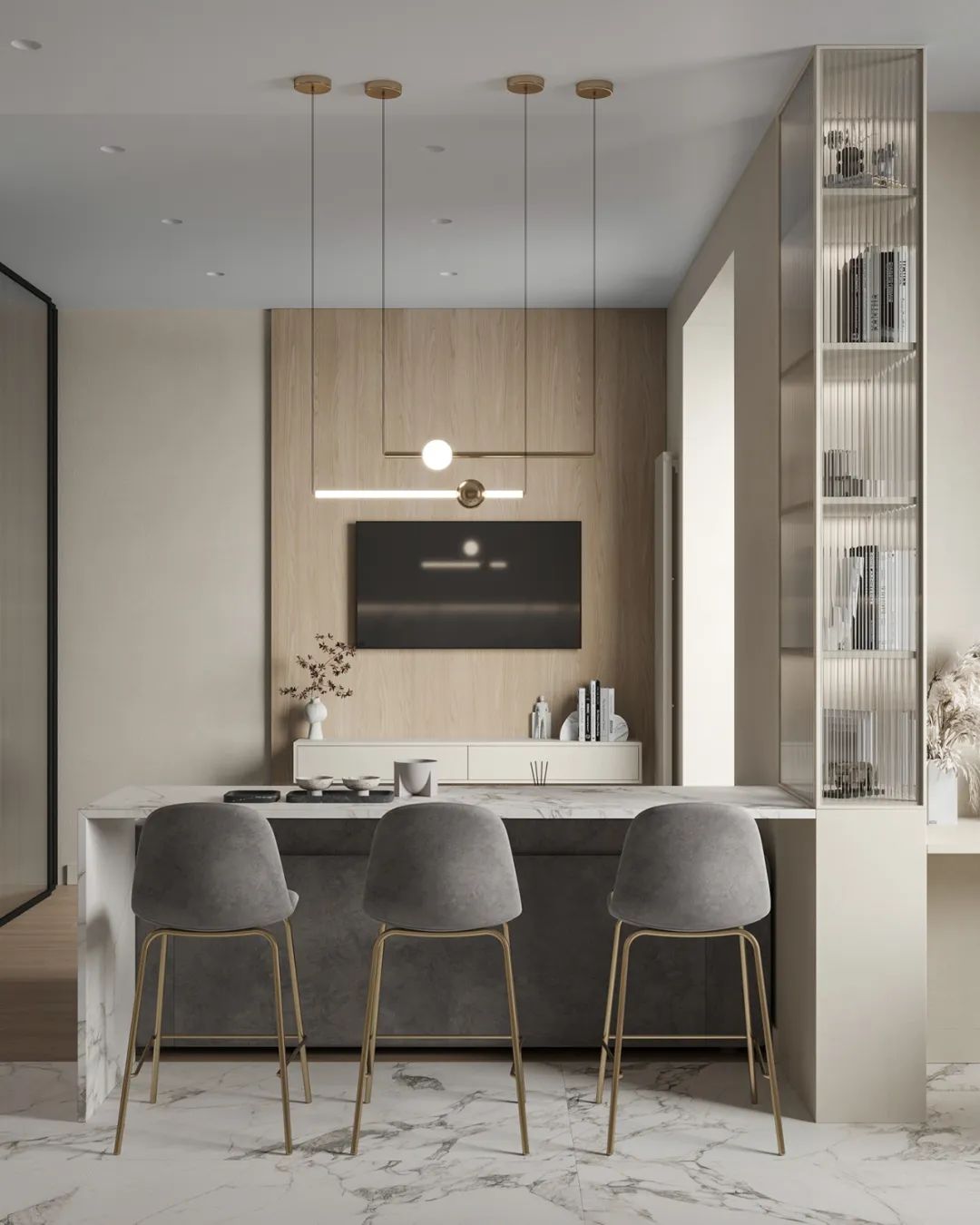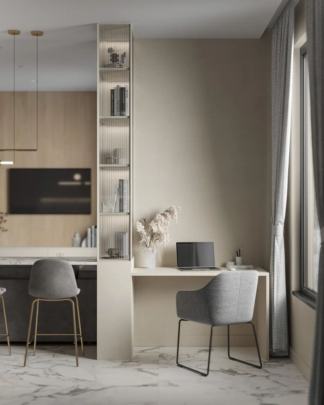 Elena Pribylova新作,AV Tikhomirov可视化,43㎡奶油风小户型室内设计,温柔的氛围,如同在自然界一般的慵懒,更给空间一种淡泊岁月的感觉。