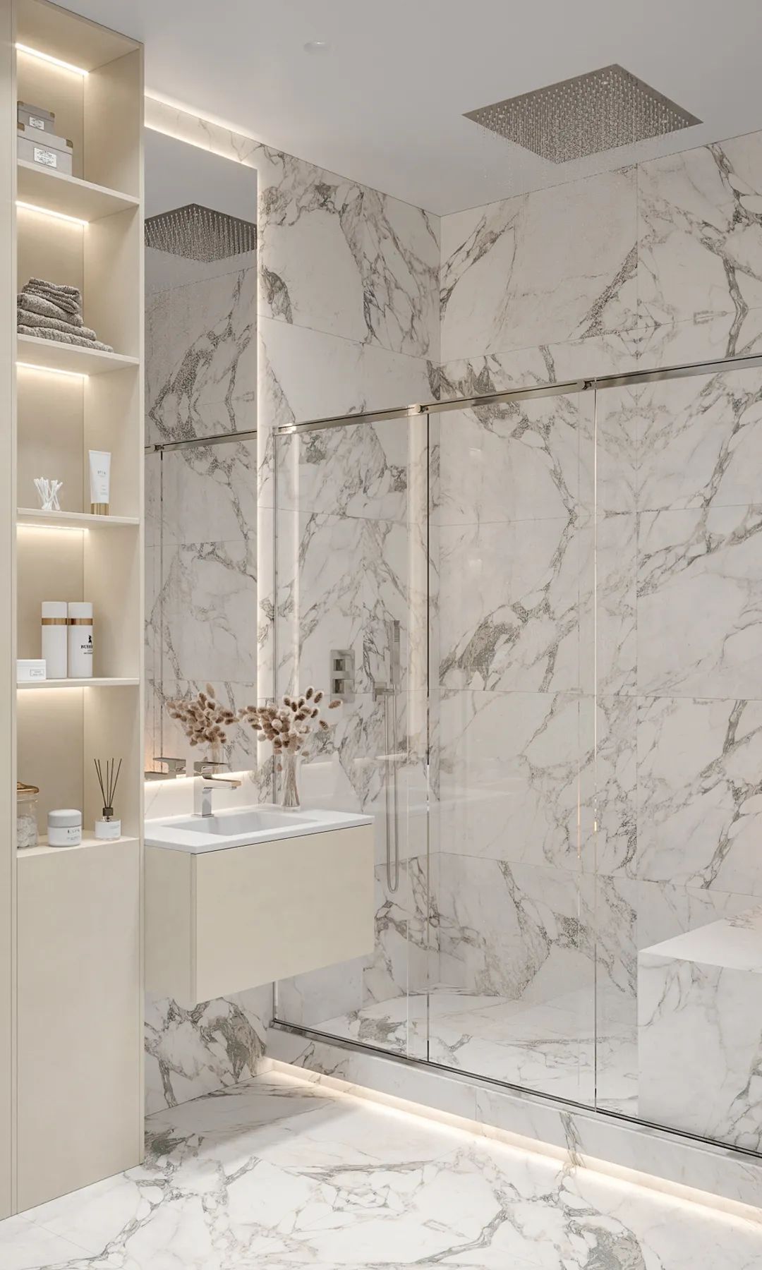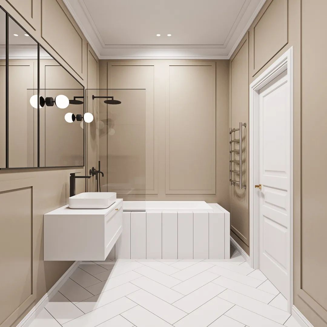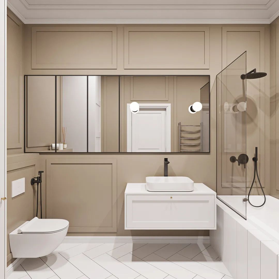 卫生间同样选择了奶油系进行地面和墙面的装饰,并且做了干湿分离,有益于卫生间洁净。