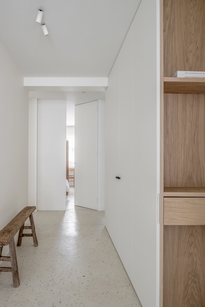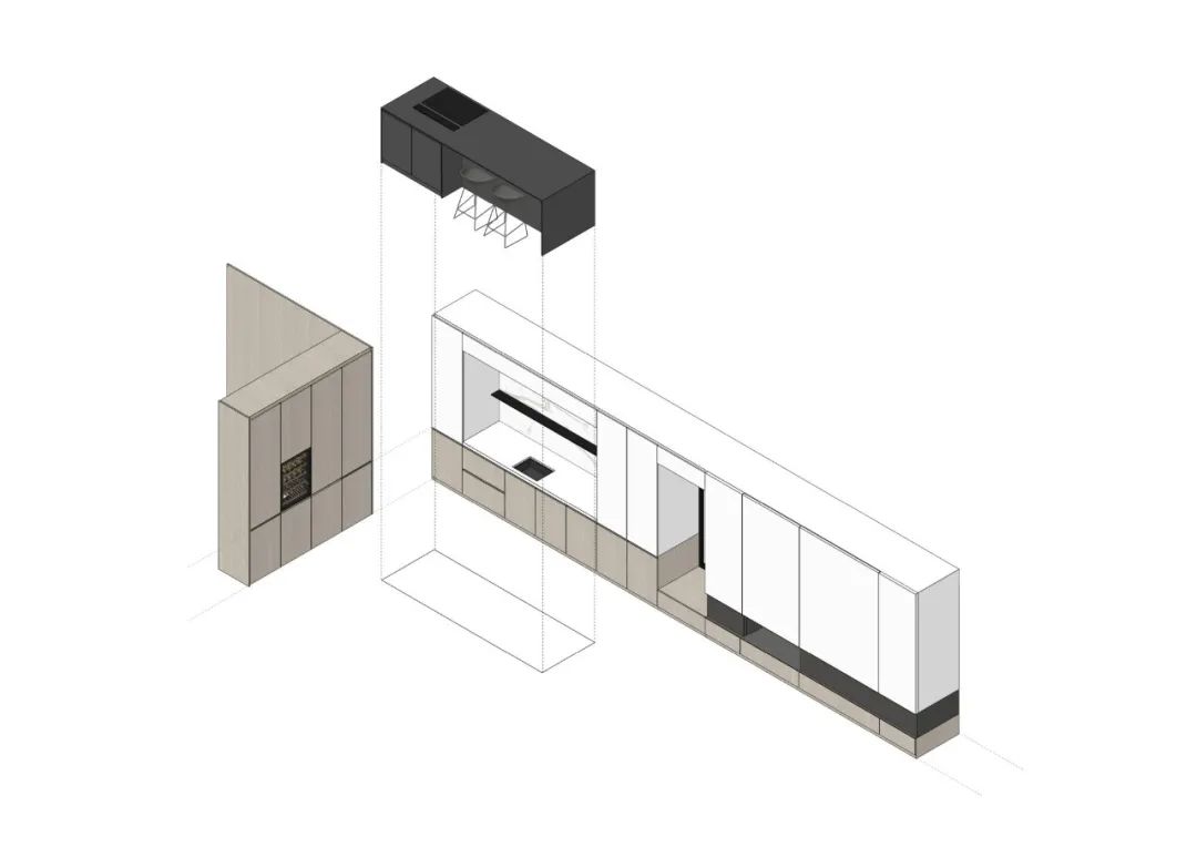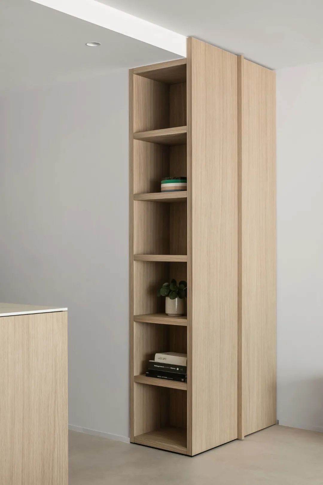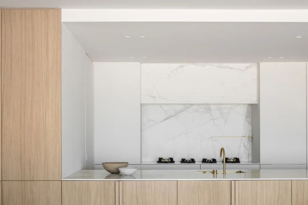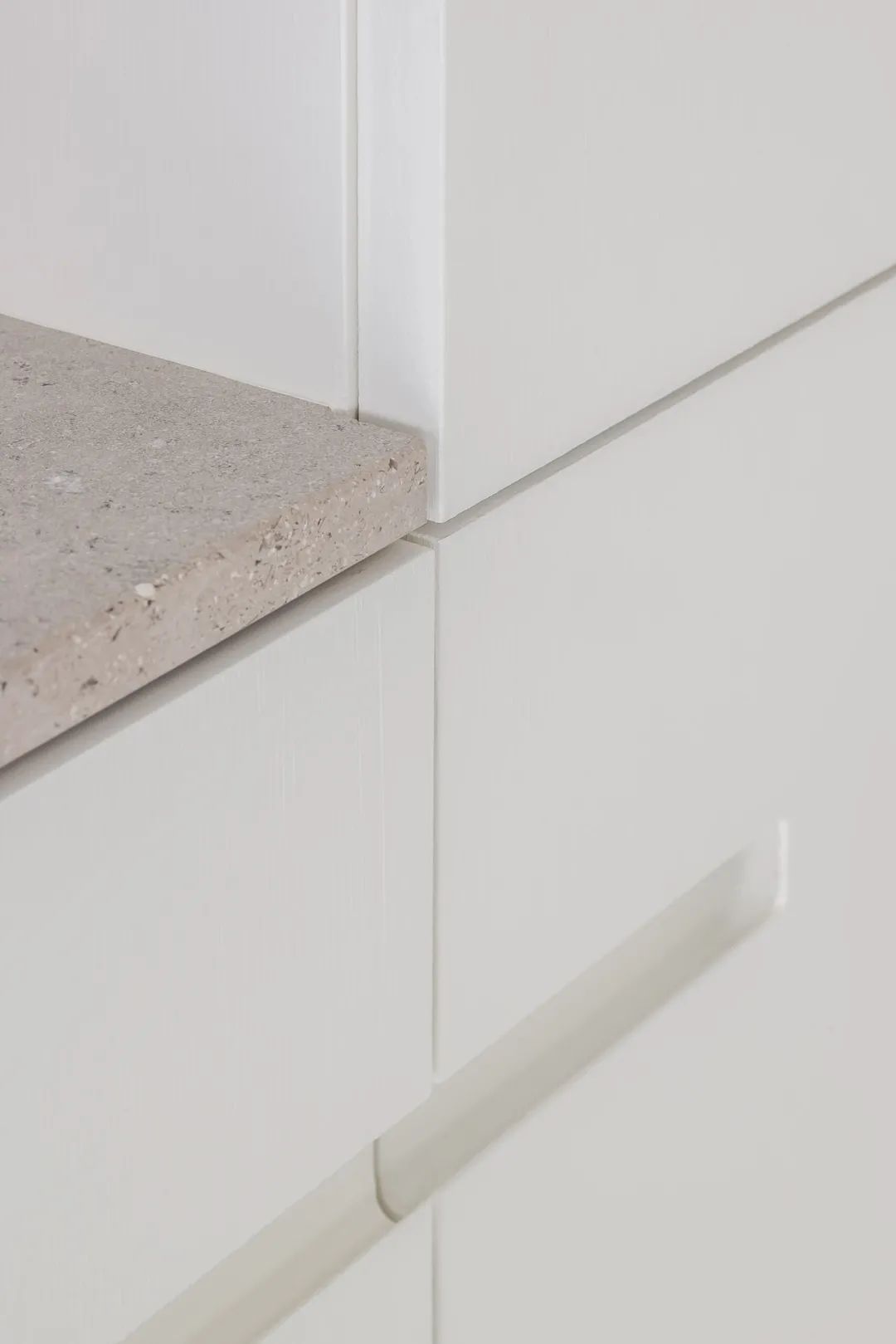 Nils Van der Celen是一名比利时室内建筑师,他是一个细节控,对建筑,室内装饰和家具设计以及艺术科学的所有其他领域充满热情。他的作品融合了清晰而简单的概念与俏皮的设计,以创造与用户或客户的完美互动。 LC住宅 RESIDENCE LC “极简的基本就是简单、纯朴,但简单却缺乏深度仅能称呼为廉价,室内空间的设计只有简单是不够的。”——Nils Van der Celen Residence LC是位于比利时克诺克的极简主义住宅,由Nils Van der Celen设计。客户和设计师的愿望是保持外部和内部之间的关系平静,并尽可能减少对比。这宁静和简单通过自然且稳定的材料而展现出来。 室内的主要材料是轻质橡木单板,它带有垂直纹理,并且结合了陶瓷石材,与水磨石形成有趣的色彩组合。家具也代表了设计师的总体观念。 厨房被设想为一个带有集成长凳和厨房岛的“大型家具展示区”,厨岛与橱柜被设计成一体,表面覆以原木,使人在室内就可以吸纳自然之气。 公寓独特而优雅的感觉来自于丰富的材料组合,从厨房便可发现其中的奥秘。厨房防溅板中的水龙头、水槽和百叶窗架都是黄铜装饰的延伸,又如岛台的大理石饰面映衬出主人高雅的品味。 卧室最引人注目的是由垂直木板条制成的后墙,为原本中性的墙壁增添了额外的活力。这一概念延伸到其他两间卧室,当然重点依旧是主卧室,其中床延伸到主浴室的实木家具中。 儿童浴室选择了步入式淋浴间,搭配自然外观的微型台面,以及不同颜色薄片的水磨石洗脸盆,这些薄片是阳光海滩生活的延续,通过贝壳和石头的再现,来表现出度假一般的休闲心情。这种闲逸又简单的生活态度也正是Residence LC致力传达的生活真谛。