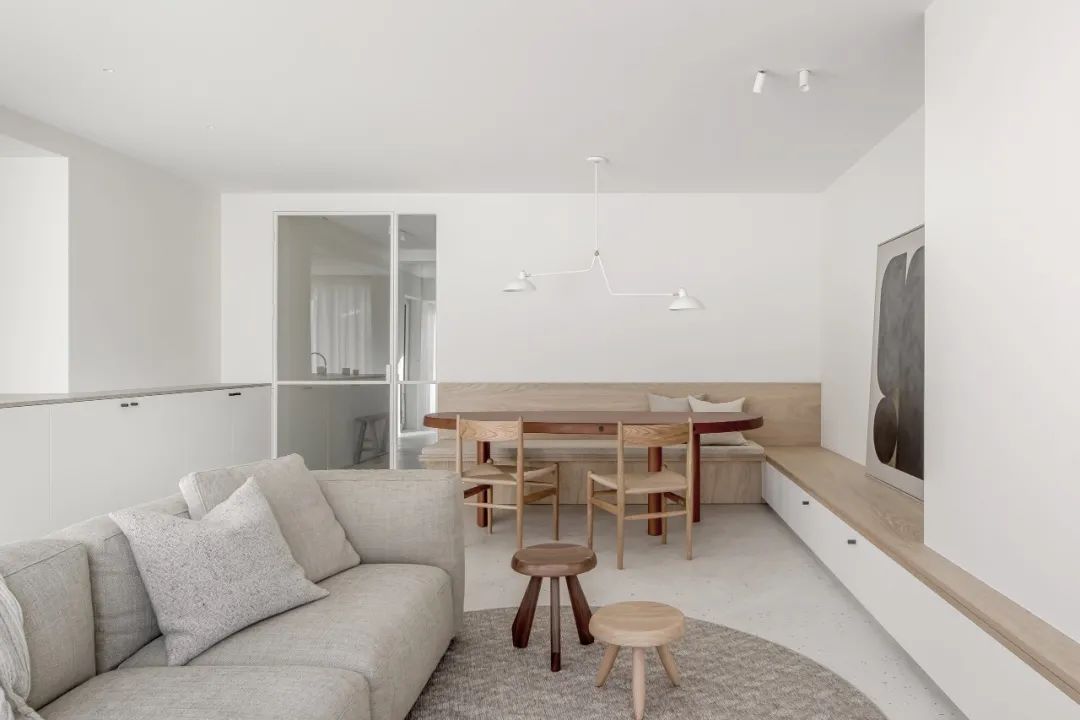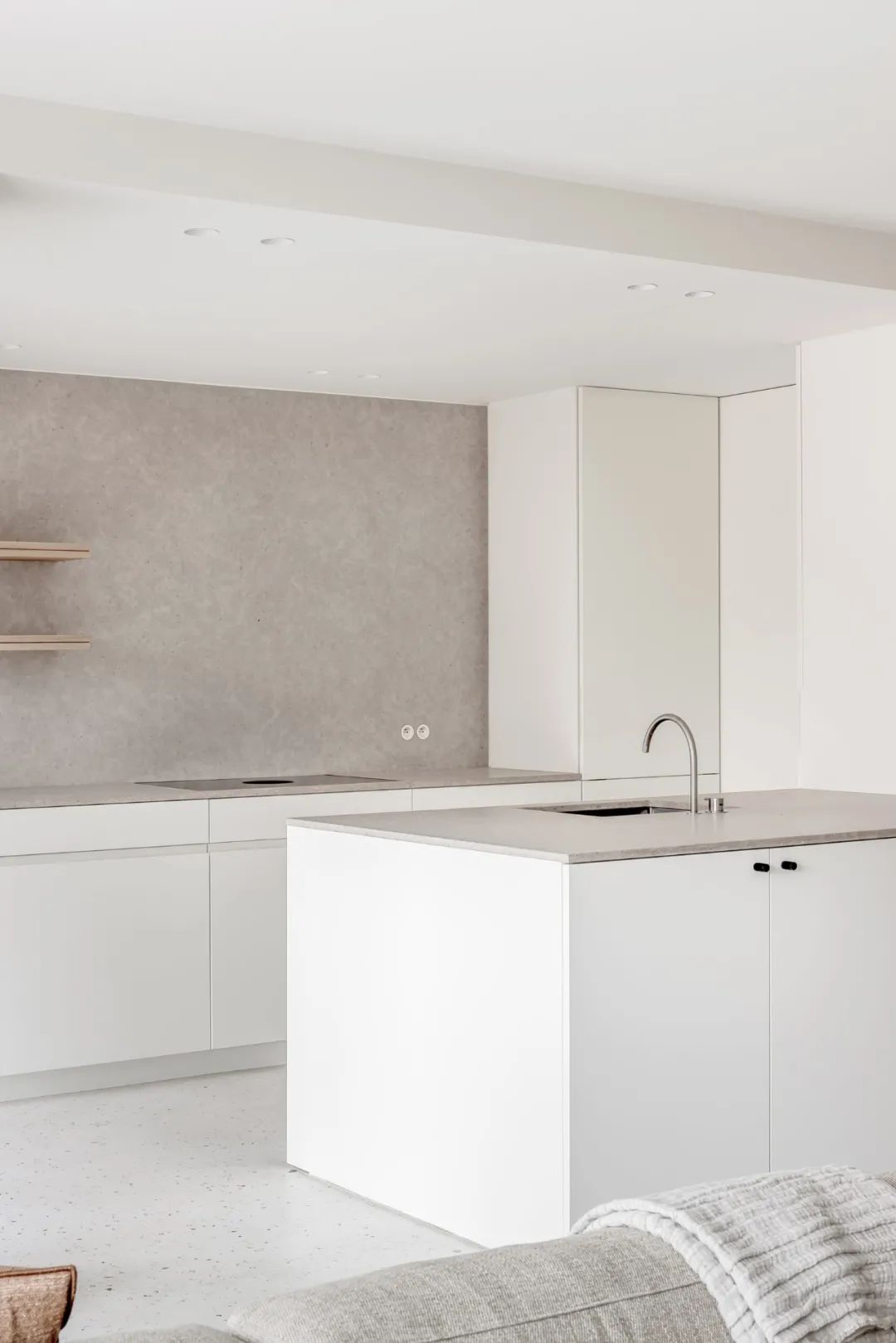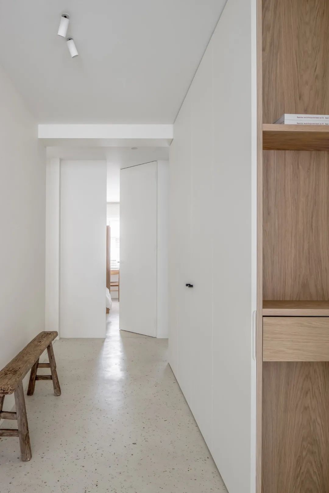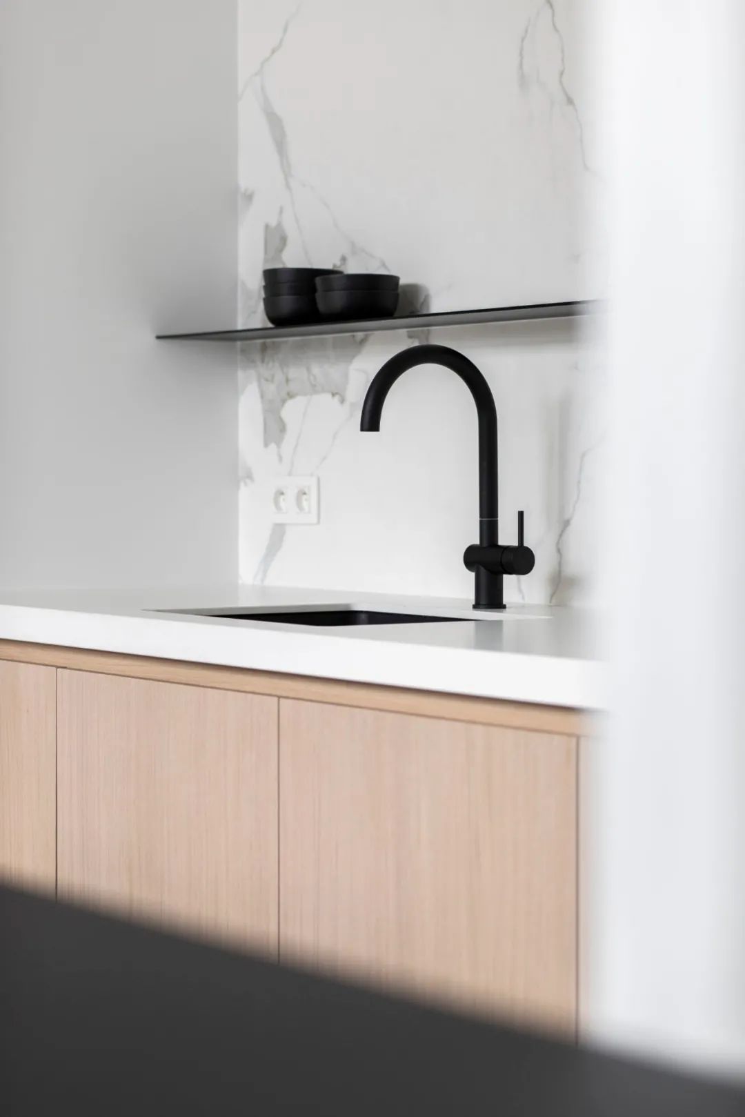 小圆住宅 BUN RESIDENCE “极简不应该和冷漠对等起来,或许我们可以另辟蹊径,在极简主义中加入一些热情与俏皮的元素。”——Nils Van der Celen BUN Residence位于比利时克诺克(Knokke),是Nils Van der Celen经手的最小改造项目。这座住宅有着六十多年的历史,在改造过程中加入了宁静和灵活,并且以此为核心,以表现出家庭的感觉。 橡木单板在室内营造出温暖的氛围,并且为家具的整体性注入新活力,使内部呈现出永恒的经典。打破生活区现有的独立空间来优化平面,以便在餐区和生活区之间建立更多联系。为了能够尽可能灵活地使用空间,这些都配备了一个连续的沙发。 虽然空间出于一个开放型的布局,每个区域却有着自己的关键词。厨房尽可能减少了木板的使用,用浅色水磨石与抛光饰面进行拼接,在视觉上扩大空间的体积感,又运用简单有力的线条表现出应有的秩序感。 卧室分为主套房和 2 间带独立淋浴间的客房。选择了一种非常轻盈、自然和宁静的材料包,适合海岸的自然环境。 地板是定制的,材料混合了带有贝壳的石灰粘土,独特而别具风情,为室内空间的整体腔调锦上添花。Nils Van der Celen的这个作品为我们生动展示了一个宁静又舒适的现代空间。 PA 住宅 PA RESIDENCE “简约和简单都是一种生活态度。我们致力于让居住空间呈现出一种更简洁、更宁静、更清新的生活态度。”——Nils Van der Celen PA Residence位于比利时哈瑟尔特(Hasselt),由由Nils Van der Celen进行翻修。客户希望拥有大量的光线和尽量少的材料,这也是哈瑟尔特 PA 项目的起点。 室内选择的材料与浅橡木有着很高的适配性,并且混凝土与白黑等基本色交替出现,延伸到室内的每一个角落。 厨房和起居空间都是开放式的,两个区域通过连续的墙壁连接起来,大理石防溅墙的水槽、水平钢带的内置燃气壁炉、隐藏的电视壁龛以及Circus Wood 椅为空间增添品牌的乐趣,同时表现出了现代主义空间的特质。 厨台深邃的黑色与周围明亮而清新的白形成鲜明的对比。质感的触感在指尖滑过,冰冰凉凉如电击般触动人的心弦。唯有真正地、切身地处于这个极简又温柔的空间,才能真正感受到这些材料与色彩存在的意义。